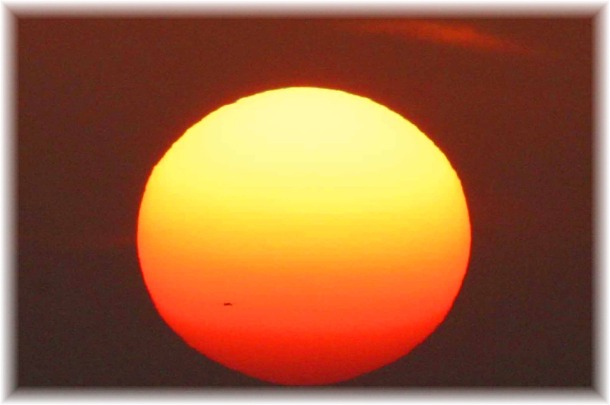 出足がおくれました ´▽`*)アハ ドラマ冬ソナ今更観なくていいのに見てから大急ぎで撮影現場へ...早くも東の空からは大きな月が昇っています、夕日は低過ぎて見えません(^^;丘まで来ると落陽までには間に合いましたがガスがでているので3分のうちに夕陽面を通過するののをまちました、ゴマ粒大の航空機が確認できましたが作品には成りませんまもなくガスに消ました、予報では火曜日から晴れます?でも寒波のようです 高高度を飛ぶライン機が大きな月に絡む作品をねらっているのですが残念ながら一日のズレは(^^; 何れチャンは来るでしょう...次は火星の撮影へ好天の時、撮影してみたいです(^ー^*)♪ ☆・:.,;*