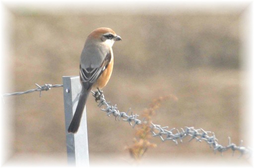 八尾空港管制塔の北側 広域防災センタ-の治水広場にてバードウォッチング、グラスエリヤは綺麗に草刈がおわっているので野鳥はすぐ発見できます、タゲリの群れがデルタ編隊飛行している姿をみかけましたので空港のグラスエリヤにはすでに第一弾の群れがすでに散らばっていましたが遠くて撮影になりませんのでモズの姿をみつけたのでカメラを向けました(*⌒ー⌒*)