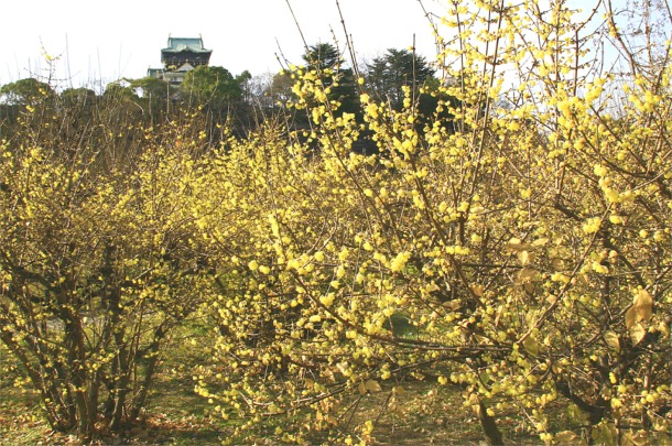 1月15日の梅園は白梅紅梅はチラホラ先はじめていました、蝋梅の樹が意外と多いのに驚きました*⌒ー⌒*)v 売店前から天守閣↓ 10月桜や紅梅も撮影しましたので整理が付き次第UPします (続く
