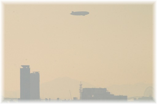飛行船は無事に泉大津に着陸しました、◆運航ルート : 泉大津→堺→難波→大阪ドーム→USJ→WTC→泉大津 等、昨日から21日まで関西遊覧クルーズが始まりまっていますが10万、14万、27万円コース、なんと高値の花です(´▽`*)アハ 空を昼から見上げたら飛行船を目撃できますょ 400m上空(@⌒ー⌒@)☆さらに上空は飛行雲曳いたジャンボ機も...空は混みあっています 大阪港の上空を飛行中です、右下角には観覧車が黄砂でかすんでいます わが町にメガシテータワーも41階ちかくまで積上がって来た西日本一の規模...山麓線の舗装工事も年度内の完成もまじかです、夜景の景勝地となりますね(@⌒ー⌒@)☆