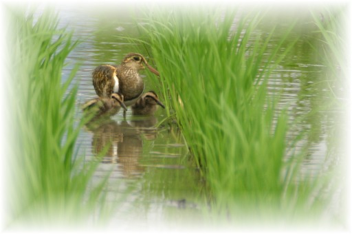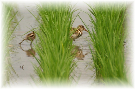 池島福万寺治水緑地公園近くの水田に可愛い鳥 タマシギの親子ですね!