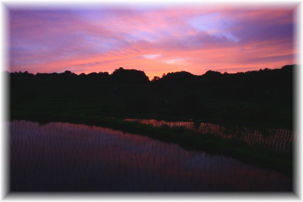 古代ロマンまほろば 明日香 棚田に焼けた空の色が移りこむ 撮影に出かけました、蛍の下見もありましたのです、入江泰吉御大先生が同じ撮影地に何度となく通いつめたと写真教室時代 耳にタコが出来るほど洗脳された、今 自分が同じことをしてるのです少しは近ずけたかな?奈良に来ると思い出します、細川地区は早くから場所取りの三脚のオンパレ-ド 稲渕の棚田はお二人...私は「古代の飛び石」へ、大水が出たのでしょうね石が綺麗に磨かれて川の中の草も流されて例年の姿よりスッキリした景観でした...午後からの空は白い厚い雲におおわれていたので小焼けも期待できないと読んでいたのですが「古代の飛び石」の上の水田に映る空に穴があきかけていたが夕焼けは無理だと再度判断して土手を登り西の空を見上げると西から小焼けが登りだしているでわアリマセンカ...急きょ近場の撮影地へダッシュ...「教訓、日没後30分以上は過ぎていても真っ暗でも山間では夕焼けの可能性は有る」´▽`*)アハ 細川地区は早くから場所取りの三脚のオンパレ-ドなので退散 まず明日香文化館から二上山を望み細川~稲渕へが道順でした...20:00ごろ明日香ホタルへ...20:30~21:30までホタル観賞して撤収...なんだか少ない飛翔でした