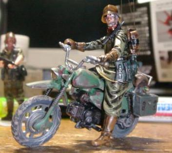 今日は珍しく7時に目覚し時計で起きることが出来ました。平日でもこの時間の目覚ましでは起きれません。今日はテニス部があったのですがそれは9時から。家で着替えていけば8時50分に出て間に合います。なのでもう暫く寝ていようと二度寝したのが運の尽き。そのまま寝過ごして起きたのはなんと1時前。目覚まし時計がなるのなんて全く聞こえず熟睡していました。1時といえば部活は疾うの昔に終ってしまっています。それからは前前からちょくちょく組んでいたゼイガン軍曹とジオン公国軍 汎用中型オートバイ B.M.C. Z78/2を完成させました。他にもクラウレ・ハモン、ランバ・ラル上級大尉も組み始め、これを完成させました。またアメリカ軍現用陸軍歩兵セットのM16A1ライフル射手も組みました。詳細についてはまた後更新したいと思います。明日も一日休みです。さすがに明日は今日みたいに一日中遊び呆けてないで課題などに取り組まないとヤバイです。