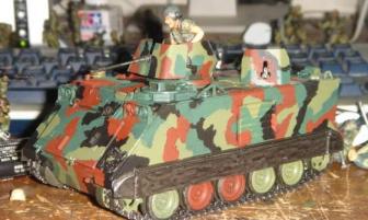 今日は迷彩塗装に挑戦してみました。塗装したのはタミヤの1/35ミリタリーミニチュアシリーズの"アメリカ装甲騎兵強襲車M113ACAVバトルワゴン"と"M1046ハンビーTOWミサイルキャリアー"です。良く考えれば迷彩塗装に挑戦するのは今回で2度目です。前に1/100MG"GM SNIPER"に迷彩塗装をしようとしましたがいろいろあって断念しましたっけ。それで前回の失敗を踏まえ、今回は筆塗りで。ちゃんと下書きをして、ABS樹脂のパーツは無しで、でやることにしました。初めに鉛筆でどんな柄にするか下書きを。 ↑見たいな感じで。写りが悪いのは勘弁してくださいな。もう先に進んでるので撮り直しは利かないんです。 ↑サフを吹くの面倒だったのでバトルワゴンの方は直塗りです。因みに塗料はクレオスのMr.COLORを使います。これで先ず"グリーンFS34102(チャコールリザード迷彩色)"で塗ります。で、この色塗ってから思ったんですが、迷彩塗装する時って濃い色と薄い色どっちから塗り始めるんでしたっけ?薄い色の方から行き始めましたがこれで良いのでしたっけ?まぁ済んだことは仕方ないので薄い方から行くことにします。で、これ塗ってるとサフが溶け出すんですね。何回か重ね塗りしていると。まぁサフも塗料の方も両方有機溶剤使ってるんで当然でしょうが。それ以前にサフは水性の塗料を塗る時に吹くものなんでしょうか。それか塗装前にトップコートとかを吹くべきだったんでしょうか。本格的?な塗装は初めてなんでそこら辺分からんのですよ。今までガンダムマーカーでちまちま塗ってたんで。バトルワゴンの方はサフを吹かんで正解だったな・・・。でまぁ塗り終わったのが↓の写真です。 ハンビーの方は雪上迷彩みたいになってます。たしかMGS3にこんな感じの迷彩ありましたよね。たしか"SNOW"とかいう迷彩だったと思います。それで次は"グリーンFS34092(チャコールリザード迷彩色)"んで塗り終わったのが↓です。 大分それっぽくなりました。後は"土地色"と"つや消しブラック"を塗るつもりでいます。それで迷彩塗装は終了のつもりです。後はウェザリングをすれば完成です。明日のうちに出来ればいいのですが…。課題を終わらすことが先決か…。それから塗装を自室に篭ってやってたんですね。勿論窓は開けてますが。しかし寒いんであんまり空けられないんですね。そんな部屋でずっと気化した有機溶剤を吸っていました。で、さっき薄め液とか見たら"有機溶剤中毒の恐れがある。"って書いてあるんですね。有機溶剤中毒って所謂シンナー中毒ってヤツですよね。あの渦巻き描かしたら変なぐちゃぐちゃの模様描く有れですよね。そう簡単にはならないと思いますがこれからは気をつけよう。