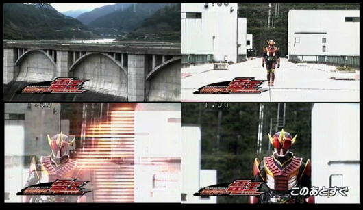 今日の番宣より、「最初に言っておく、サビても強い!」。・・ちょ、開始前からネタバレしてますが。。。眠い中、目が一瞬で覚めた衝撃。いやマジで最近の電王、「カイ」が登場してからかなり良くなって来ている。こう言う「絶対悪」みたいな敵キャラが無かったので前半は微妙だったが、カイの登場により今までの内容が理解できてきた。(「分岐点」である桜井侑斗(過去)を抹殺する為に過去にイマジンは飛んでいたのか)今まで「飛んだ過去に桜井さんが来ている」と思っていたが、逆で「桜井さんのいる時間へ飛んでいた」と言う事になるみたい。良太郎、侑斗二人揃っての変身。ヤバイ、正直カッコイイと思った・・良太郎の変身後がプラットフォームじゃなければかなり絵的にはカッコイイが、物語的にはこの方が合っている。ライナーフォームへ変身するかと思ったが、今週は「テンコ盛り(クライマックスフォーム)」でした。(このフォームまだ出番があるのね・・)番宣でネタバレしていた「錆ゼロノス」登場。バックジャンプでの射撃シーンはマジ良すぎ!(トドメの極太レーザー?は微妙。。。)電王のライダーキックも久しぶりに見たせいかかっこよく感じた。来週からも期待してよいのか電王。・・オープニング曲「クライマックスジャンプ」のヴォーカルが、「AAA(トリプルエー)」から「イマジン4人衆」に変更されてた。。。悪くは無いが、前の方が個人的には好きだ(見慣れているせいもあると思うが)。
