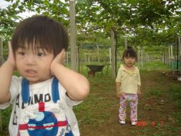 少し朝方にもなるとかなり肌寒くなってきて、ひーは少し風邪をひいてしまい、鼻水が止まりません・・・お薬はもらってきたので少し様子をみます~行ってきました!人生初のぶどう狩りに!!場所はかなりの山奥で、うちから1時間くらいかかりました~最初、行こうと決めていたのは、食べ放題1000円!種類は40種類あります。県内ではここだけワイン作り!なんてネットで書いてあったの!かなりオシャレな場所でカフェや、バーべキューなどできる場所もあるの!!そこで友達家族と待ち合わせ~^^で、みんな揃ったとこで案内所へ・・「いらっしゃいませ~^^今日のぶどう狩りの種類はこちらです!」と、見せられたのがブルーベリーみたいに小さく、しかも種あり!これじゃ、ちび達に食べさせるのはかなりの手間!!そして、1種類のみ?!話が違う~~~~!!作戦会議・・・・「1種類って何??」「しかもひーたちに食べさせてる間にうちら食べれないじゃん!」「ここ来る前に、まだ何件かぶどう狩りできるとこあったよね??」「よし、場所移動~!!」作戦会議終了・・・・そして、移動したのは個人経営のぶどう狩り!優しそうなじいさんが作ってたよ!種類は3種類!巨峰などなど!金額は一緒だったので、そこにしました。しかし、これでは終わらなかったのです。天気は、曇り。だったのに、行ってすぐに小雨・・・おいおい~!大丈夫かな??と、思っているうちに雷山だけに天気は変わりやすいのね~・・・怖かったのか、耳を押さえています・・・そうこうしてるうちに、雨~~~~~ブドウを売っている小屋に移動~!時間制限なしだったのでゆっくりできたよ!ブドウがなくなると男たちに取りに行ってもらってっと。でも、写真全然撮れなかったよ・・・そうそう友達は只今、妊娠中!しかも逆子との事。22日に手術が決まったの!一応、自分で決めれたみたいけど、誕生日を決めるのって困るって言ってたよ!確かにそうだよね~!!難しくってあたしは悩みそう・・・その後は、お友達の家に行って、手巻きずしを食べたよ~!!チビ達は、同じ年の同じ月生まれの生まれた病院も一緒なのすごい偶然でしょ??たまたまだったのよ~!赤ちゃんすごい楽しみ!!あたしはお祝いの1つにおむつケーキをあげようと思って、只今、製作中・・・予定は10月だったから焦ってますあ!!今日かわいいの見つけて買ってきたのが50%OFFなり~!最近ひーがカエル好きだからついつい目に行っちゃう~~~!以上、ぶどう狩りの報告でした!あ!あたし的には、チビ達にぶどう狩りは向いていません!イチゴ狩りの方がお勧めです!!