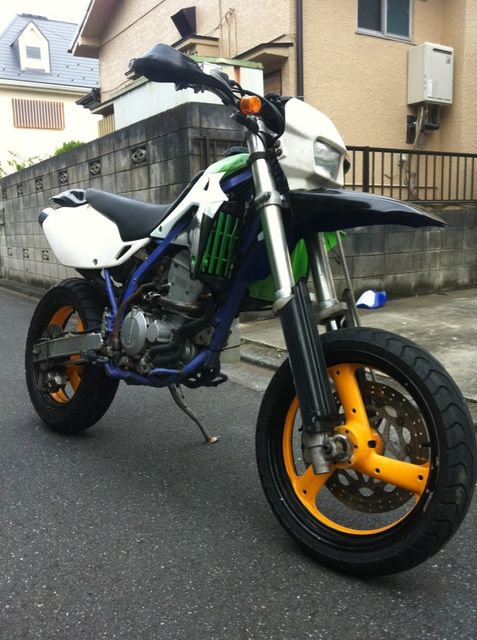 やってしまったなぁ・・そんなこんなで45日間の免停中でございます。あぁぁぁぁぁ・・・・バイクにのりたいなぁ・・ただ45日間過ごすのももったいないのでお亡くなりになられたクインキーの代わりに買ってきたKLX250SRをコツコツと直すことに。まず。不動なので実働にもどす!まぁこんなのはチャチャッと終わらせてしまいどうせだったら免停明けにすぐ練習再開できるようにモタード化してしまいましょうか!ってことで、適当にモタード化しましたwいやぁ・・・コレで酷道はいけないな・・まぁオモチャマシンの完成。あとは外装を綺麗にしますかね~
