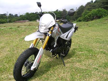 今日はまたまた行田へ練習にいってきましたwっていってももともと練習するつもりはなかったのだけど商談のついでにねwん?なんの商談かって?それは・・・エクストリームの練習用バイクの商談さ。国が年収の三分の一以上は借り入れできないとかクソな法律作ったせいでローンが組めずXR100モタードが買えない・・・なんてこった!WR250Xで練習するにも壊しちゃいけない意識で逆に危ないもんで・・んで、購入したのはコレ。写真がないもんで、他人のブログから失敬(すいません;クインキー スーパーモタード200GYはいw中華バイクですwが、しかーし。その辺のパクリものと違ってスズキとの合併社なのです。まだいいかなw試乗かねて、ちょこっと練習させてもらったが・・・・・・いけそうなきがする!エンジンはジェベル系のコピー品オイルフィルターなんかはジェベルのがつかえるらしい。耐久性はわからんが意外と悪くないらしい。まぁ練習にしか使わないバイクだから耐久もクソもないけどねwまぁ・・新車価格26万ほどだが・・すっごい破格で売ってもらいました^^登録してもってきたらガンガン練習できる!今日練習した帰りに、習ったことをWRでやってみたら・・クインキーよか簡単にできる・・というわけで・・クインキーは練習にもってこいのなかなかいいバイク!なにより静かでいいw