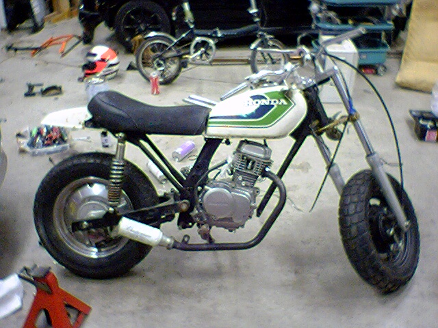 さてさて。CB50に並んでエイプをつくっていますが・・・あとフレームを買うだけ!足回りはNSR50用でいこうかと。Fフォークをアウター→NS-1用インナー→エイプ用にしてまずはフロント完成という流れ。リアはNSR用えをカラー入れてそのままポン!・・・それはホイールベースがやたらみじかくなるのでやめよう。エイプのスイングアームにサポートを溶接して使用することに!・・・・まぁこんなながながかいてるけど。まずはフレーム買ってからだねw