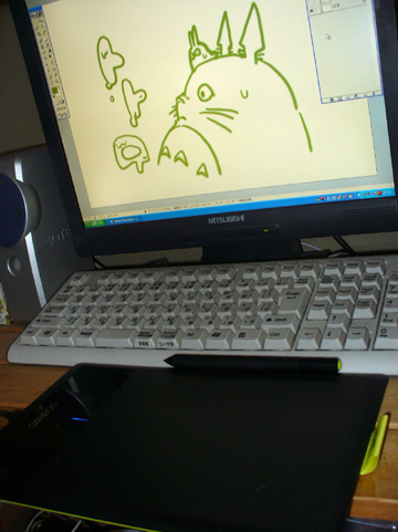 ペンタブ買いました。初号機&Intuos3で描いてましたがその部屋のエアコンが壊れてもう無理。寒すぎる。居間のぬくぬくのカーペットの上で描きたいので2号機用に新たにペンタブ買いました。ソフトとか何にも付いてないので安いのと置くスペースが限られてるのでなるべくコンパクトなのということでコレにしました。アマゾンがいちばん安いけど、ポイント目あてに楽天のソフマップで買いました。なんかちょうどポイント10倍やってたんで。↓コレ「WACOM Bamboo Pen 」Designed By チワワン子
