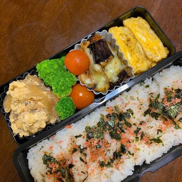 ブログにご訪問いただき どうもありがとうございます本日のお弁当は2個男子弁当昨夜の晩ごはんで作った カツ煮ナスのチーズ焼き玉子焼きブロッコリー&プチトマト女子弁当お肉があまり好きではないのでカツ煮の代わりにチクワ炒め達成感に満ち溢れてるではでは。