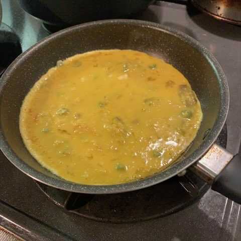 直径20cmのフライパンに流し込み