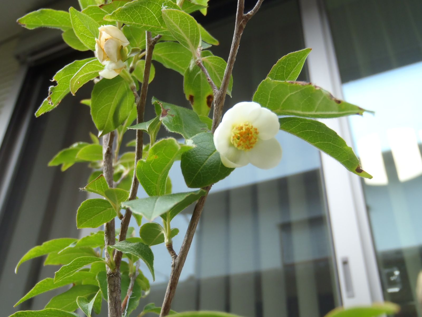 昨日までの晴天はどこへやら、今朝から梅雨入りを思わせる雨が降り続く。30℃近かった気温もぐっと下がって凌ぎやすくはなったがしばらく憂鬱な天気が続きそうである。そんななかで新発見!我が家のヒメシャラの幼木が花を咲かせたのである。去年ホームセンターで買って鉢植えにしたもの。まだヒョロヒョロで鉢底から140センチ程度だ。今年の開花は無理かなと思っていたのでビックリした! 雨の中、小さな白い花が2輪咲くさまが愛おしい~先日、道の駅なるさわで買った月桂樹を白い12号鉢に植え替えました!鉢底から170センチ。なかなか形の整った樹で価格も安く得な買い物だったと大満足~