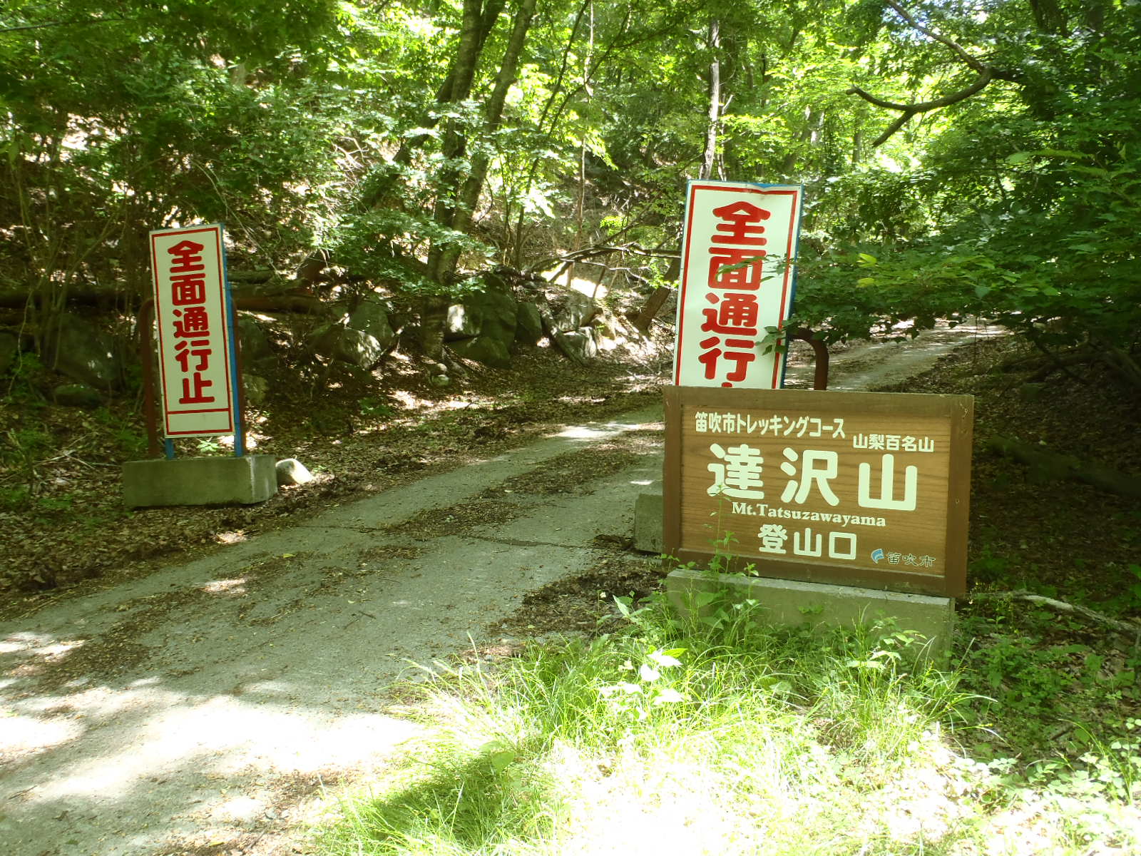 山梨県笛吹市の達沢山へ行きました。^御坂みちを下り、立沢バス停を右折して(下って来た場合、ここが究極のヘアピンカーブと超細い道路、ハンドルを数度切り返さないと入れない。ボデイが壁面にこすらないかとヒヤヒヤであった)そうこうしながら採石場の砂埃を浴びてに立沢林道入口に到着。帰りには走りたくないと確認したらもう少し楽に入山出来る道がありました。登山口は、4~5台の駐車スペースがありますが今日は1台もなし。私はここから歩いたが、通行止めの看板はあるものの林道終点までちょっと無理すれば乗り入れは可能であった。(道が細いので休日はすれ違いに苦労するかもしれない)簡易舗装の林道歩きは暗くて単調。右の沢音を聞きながら小さな祠を左に見送る空が拡がり明るさが増し明るくなれば林道終点は近い。こうした看板もあるのでやっぱりクルマの進入は止めたほうがいいですね!岩石の落下が少し多かった。下手に走りると先の尖った岩石でタイヤをバーストしかねない。やっと着いた林道終点。’標高(1090m)先に直進、堰堤上の小沢をわたって対岸へ移る。花崗岩の白砂を縫う流れがとてもきれいでした!鞍部に向かって登る途中のこれは御神木か。ミズナラの巨木が出現!ほどなく達沢山とナットウ箱の山の鞍部に到着。ここは左に折れて達沢山に向かう。新緑の林に点在するのは小ぶりなヤマツツジ!今回の山行で見た花はこの花のみだ。ヤマツツジの花冠をルーペで観察後。一投足で達沢山(1358m)に着きました。周囲はミズナラが大変多い。静かな山頂でまだ生きている事実を大事にしたい~山頂からの展望はなく、遠く三ツ峠が見える程度、ほんとうは葉が落ちた晩秋から初冬にかけてがこの山の適期なんだろうなあ~小休止後、再度、鞍部に下ってナットウ箱山を目指す。樹幹から垣間見えた山梨県側からの富士山。吉田大沢にはまだたっぷり積雪が、、細い山道に花崗岩の大石を所々で見かけるようになれば山頂はもうすぐだった。小広いドーム形をした四等三角点のナットウ箱山(1412.5m)の山頂。ずいぶん変わった山名である。私の好きな納豆と関係あるのだろうか?そのいわれは?気になるところである。それとももう一件、もとはここが京戸山だったという記述があるがその先の小ピークは何だったのかそのあたりのいきさつははっきりしない。ハイカーさんは戸惑うところであろう。いい加減にしないでその辺ははっきりしてくれいと言いたいのだヨ!ガイドブック(山梨日日新聞社)に従ってさらに進めば小ピークが京戸山(1430m)となっているがそんな標識はなく丸太が一本建っているだけ。高度計が同じ高度を示しているので恐らくこれがガイドブックによる京戸山なんだろう~念のため、さらに東進して1~2分で下のようなしっかりした案内標識を見た。今日はここまでとして再度、ナットウ箱山へ戻り、軽いランチタイムを摂る。ランチ後、鞍部に戻り、トコトコと林道を歩くまだ残っていたハリエンジュ(ニセアカシア)の白い花を見ながら、、今日の山は、花も無し、展望もない。登る適期を間違えたのか~ひたすら歩くのみ私自身、とくに山梨百名山への関心は全くない。いつも通りすがる山にいって見たかっただけ。が、言いたい!百名山なら百名山として価値ある所以があってしかるべき、さあどこが名山か?と!問いたい達沢山。あえて言わせていただければ静寂な山ということか。トレーニング対象の山としては申し分ないがまあ、たまにはこんなハズレの山もあるさ。再度訪れることもないだろう~今日一番のヒットシーン!帰路、御坂みちの展望台で撮った富士山が素晴らしかったなあ~帰りは道の駅鳴沢へ寄り道。前から欲しかった月桂樹の苗木を衝動買いしてきました。樹高160cmで超安値、次代につなげるべく育てて行きたいものです。もう1本,目を付けているのは秋の主役、ツリバナ あのはじけた赤い実がなんとも愛らしいのだ!<コースタイム>立沢(林道入口)10:15~11:00~林道終点~11:25鞍部~11:35達沢山11:50~12:00鞍部~12:10ナットウ箱山~12:20京戸山~12:25京戸川林道分岐の標識~12:29京戸山~12:40ナットウ箱山13:00~13:15鞍部~13:35林道終点~14:10立沢(林道入口)