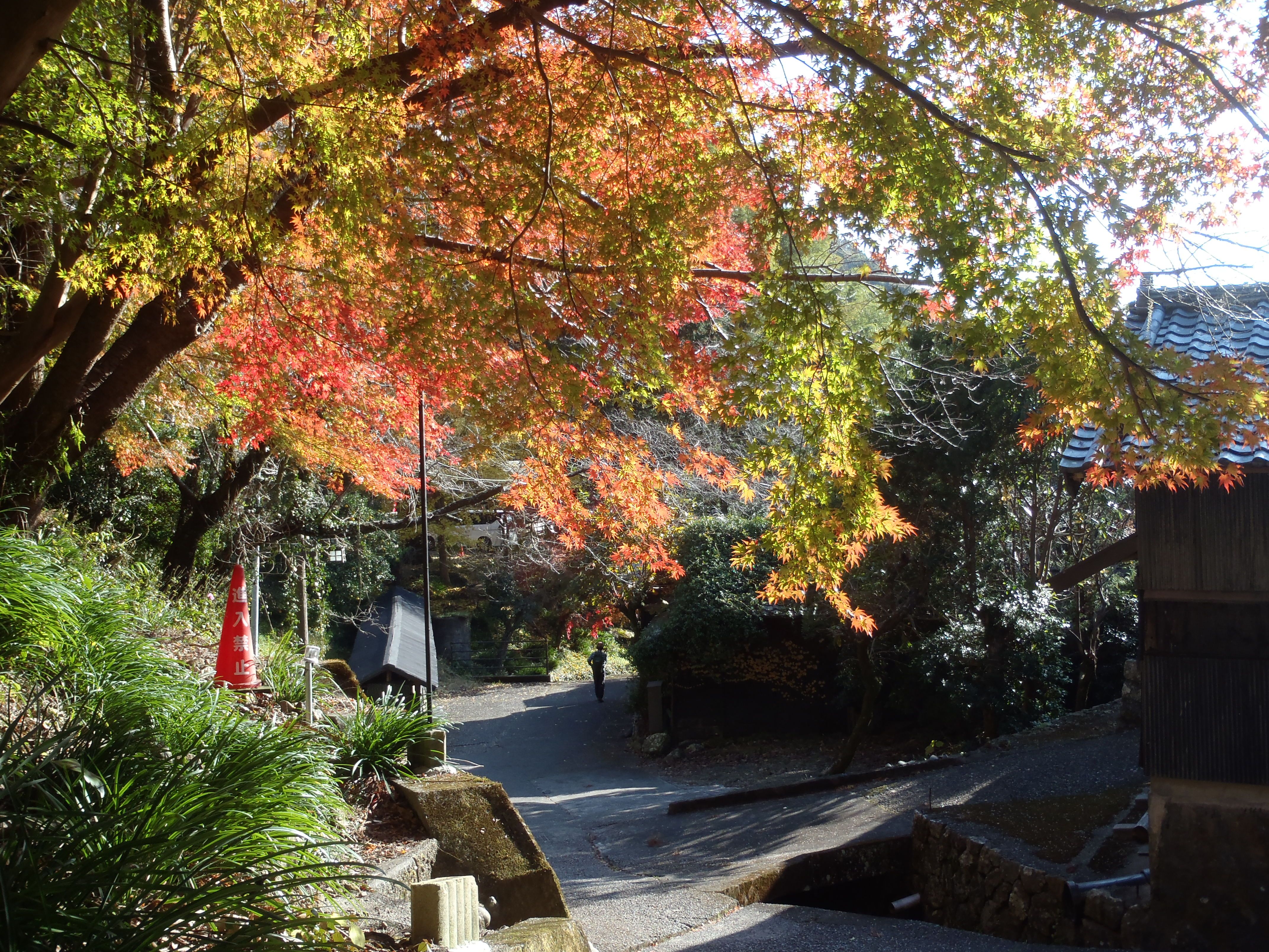 鞍掛峠から日本坂峠へ行くコースをまだ歩いていない。以前から気になっていたので急遽ヨガ仲間のK口さんを誘って行ってきた。予定は、花沢の里~鞍掛峠~日本坂峠~満観峰~鞍掛峠~花沢の里である。まだ紅葉の残る花沢の里をあとにハイキングコースに入る。鞍掛峠から日本坂峠を歩く。よく整備された歩きやすい山道であった。ほぼトラバース気味に歩いて、このあと花沢山と満観峰を結ぶ稜線に出ることになる。稜線から数分で見晴らしのよい「家康のベンチ」へ~なかなか味のある看板だ~富士山と愛鷹山塊、手前は、静岡市街と安倍川、東名高速道路。右端は日本平の末端部だ~さらに歩を進めると右に古い「水分大神」を見る。裏をよ~く見たら江戸時代?建立みたいだ。お地蔵様の立つ日本坂峠に到着。古事記にも出てくるという古い峠だ。日本坂峠からUターン、満観峰を目指す。鞍掛峠への分岐を過ぎ、三角点の先にまた展望のよい場所があった。東名高速道路がうねりその先に日本平、右に駿河湾がキラキラ光る~ストレートなプラの擬木階段の登りが数ケ所、けっこう、これが老体にはこたえるんだ~日本坂峠から50分で満観峰(470m)山頂に着く。山頂は、ハイカーで大賑わいである!どうやら民放テレビでごく最近、満観峰の取材、放映があったらしくその効果かも?冷たい強風が焼津側から吹いて早々に昼食を済ませて下山する。焼津港を見下ろす。山頂に最近完成した何代目かの東屋。立派である。第一駐車場に戻って見た本日の歩数計は15500歩なり!意外と歩いたもんだ~