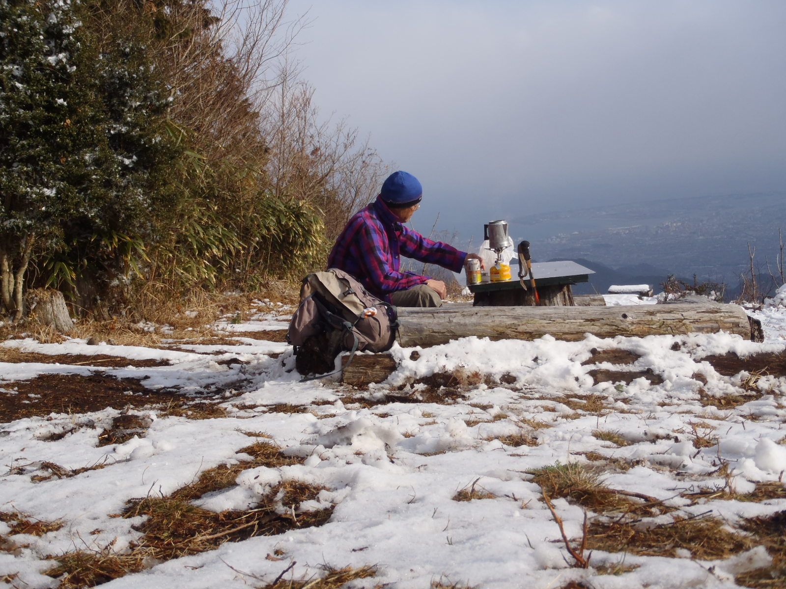 薬師岳(1051m)14時15分着。温度計は-2度を指していた。