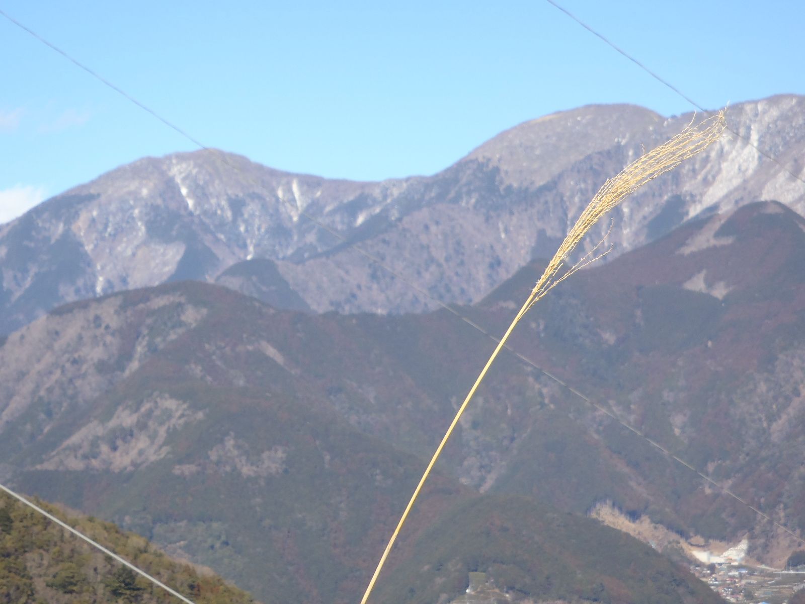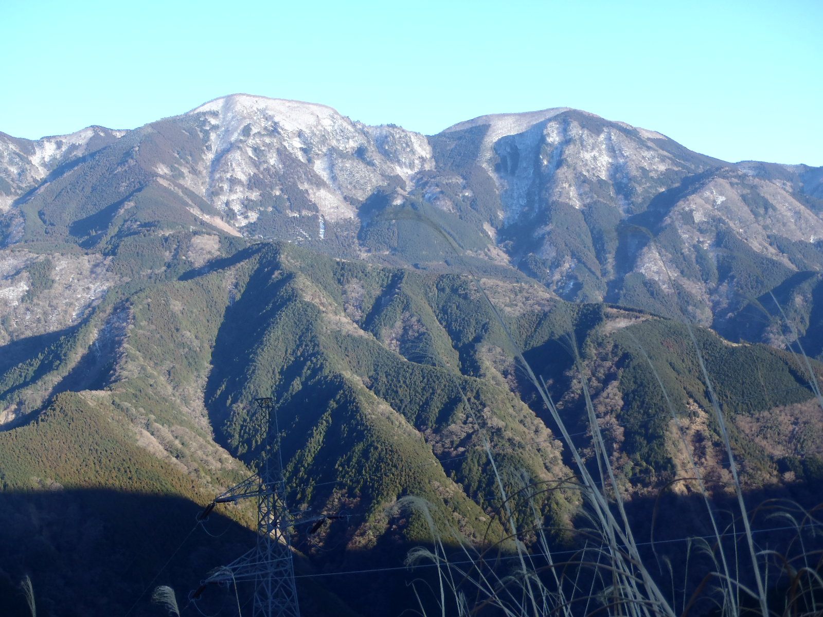青笹山(左)送電線鉄塔の立つ浅間原(中央)湯野岳(右)