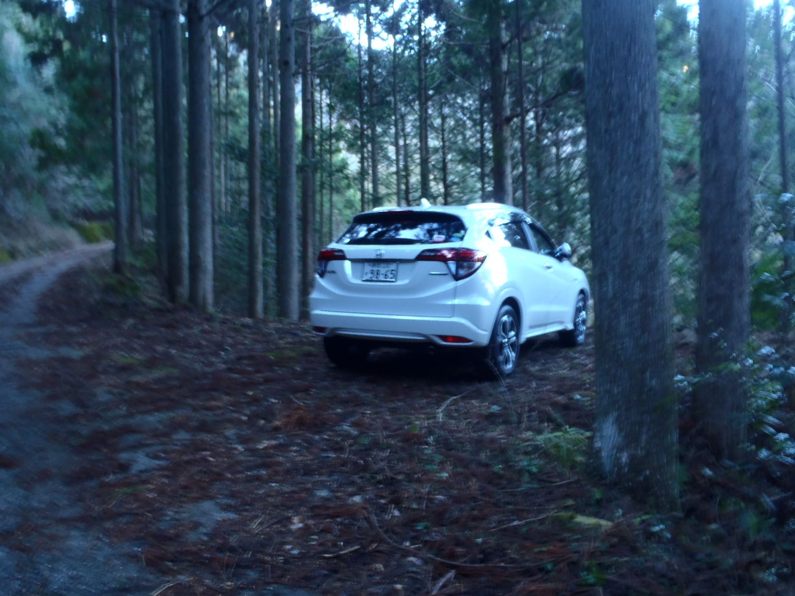 右側に2台ほど置ける駐車スペースあり。VEZELをデポ。