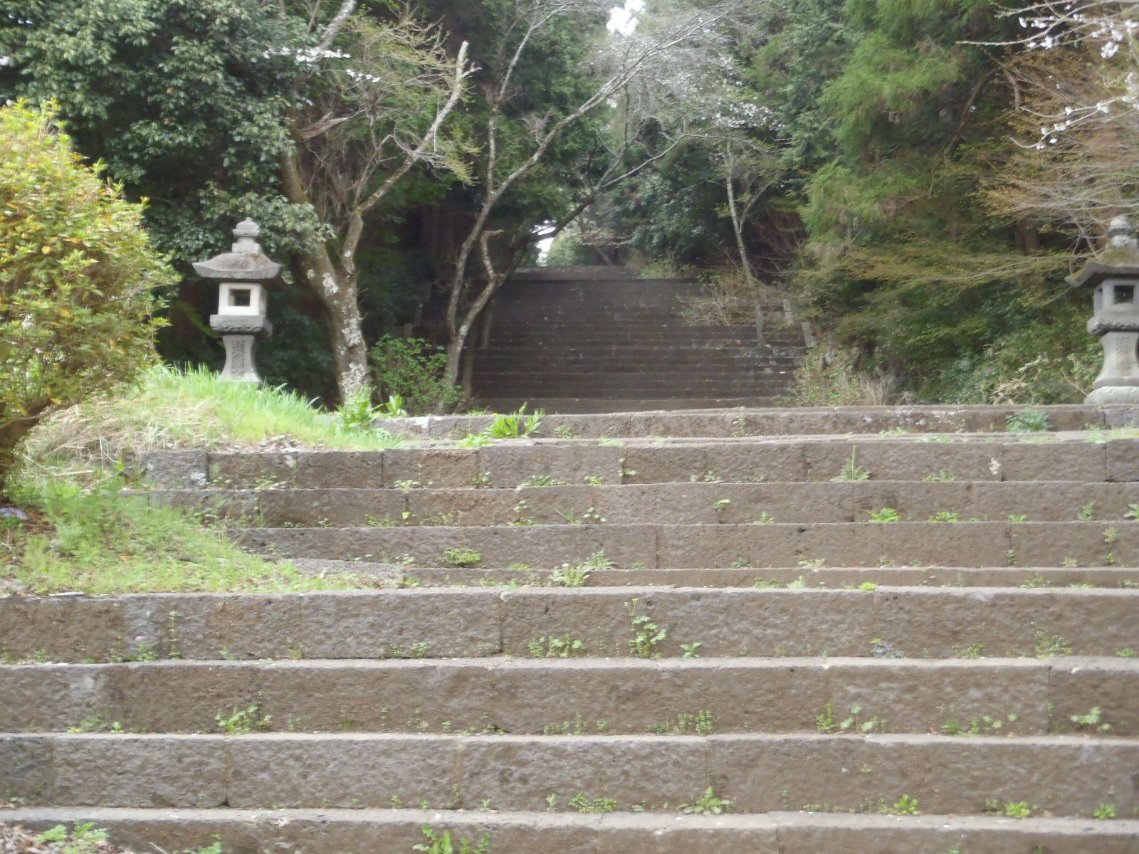 始めは落差のある階段が続きます~幅15M135段の石段を上る。