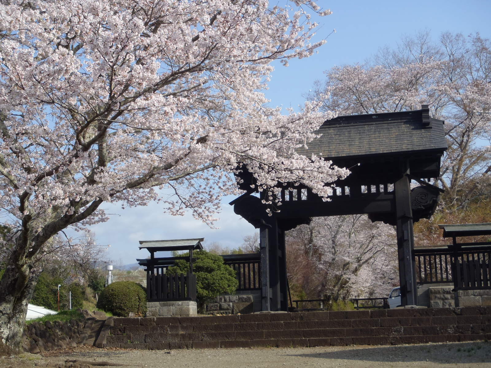 次の訪問地は、西山本門寺の玄関・黒門、参道はソメイヨシノが真っ盛りでした!