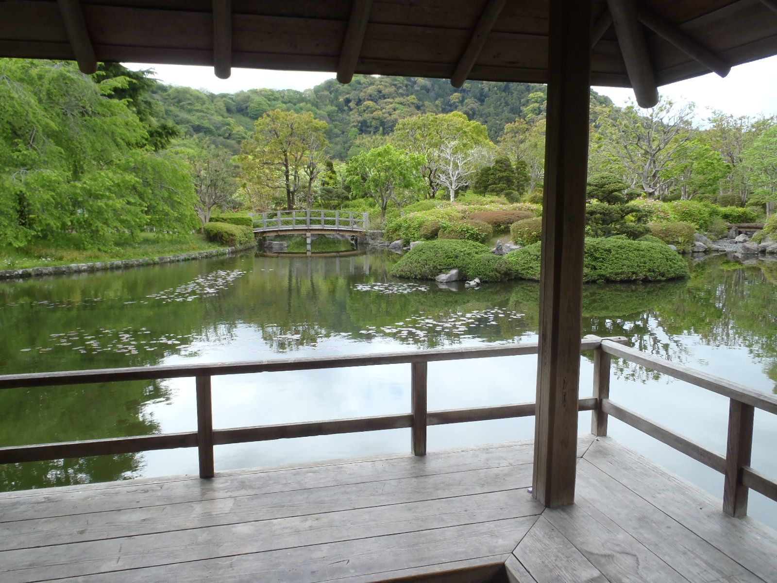 公園は、いま緑一色、カルガモが元気よく泳いでいました~