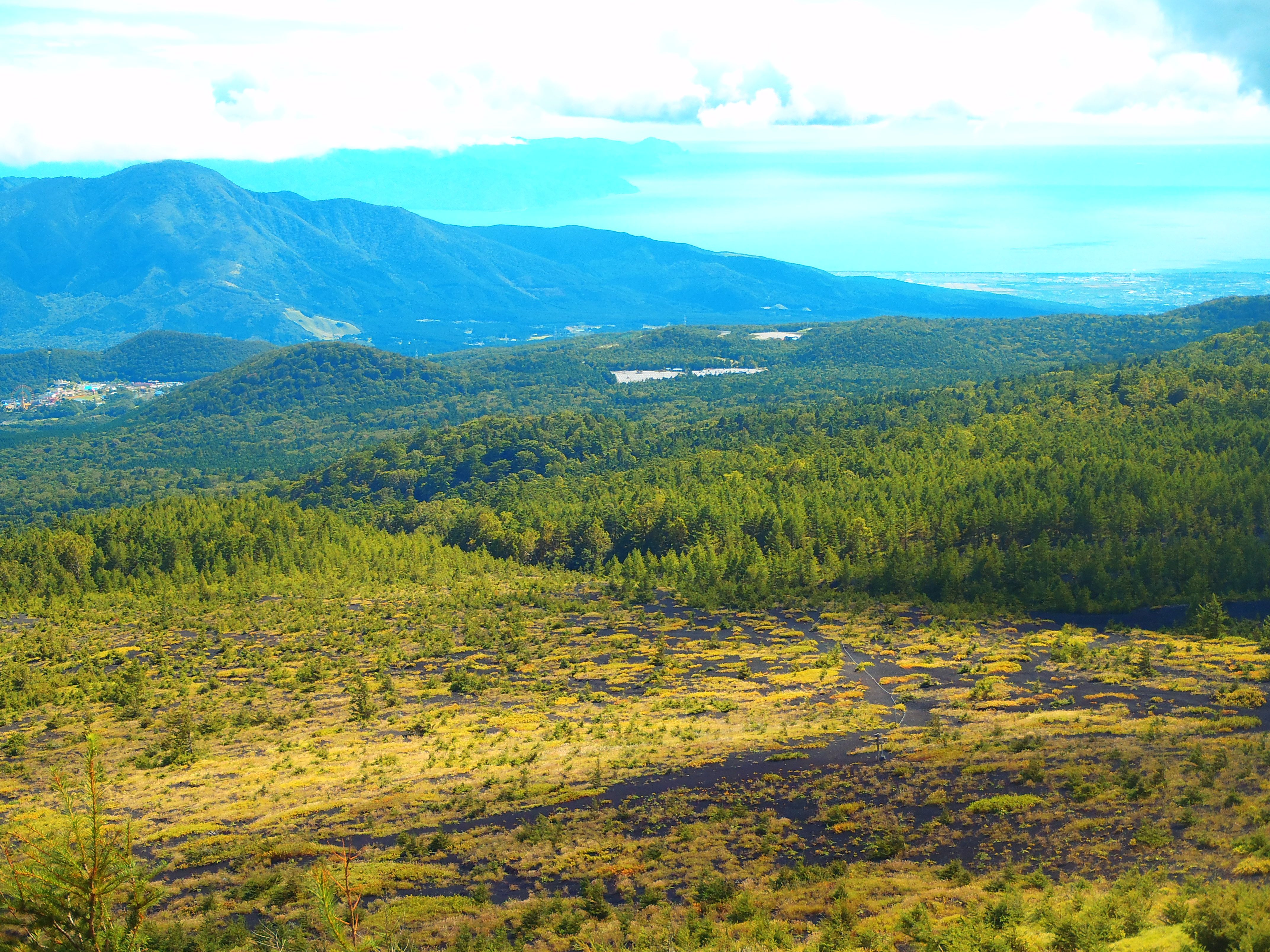 眼下の四辻の先には愛鷹山塊と伊豆半島、駿河湾が、、、