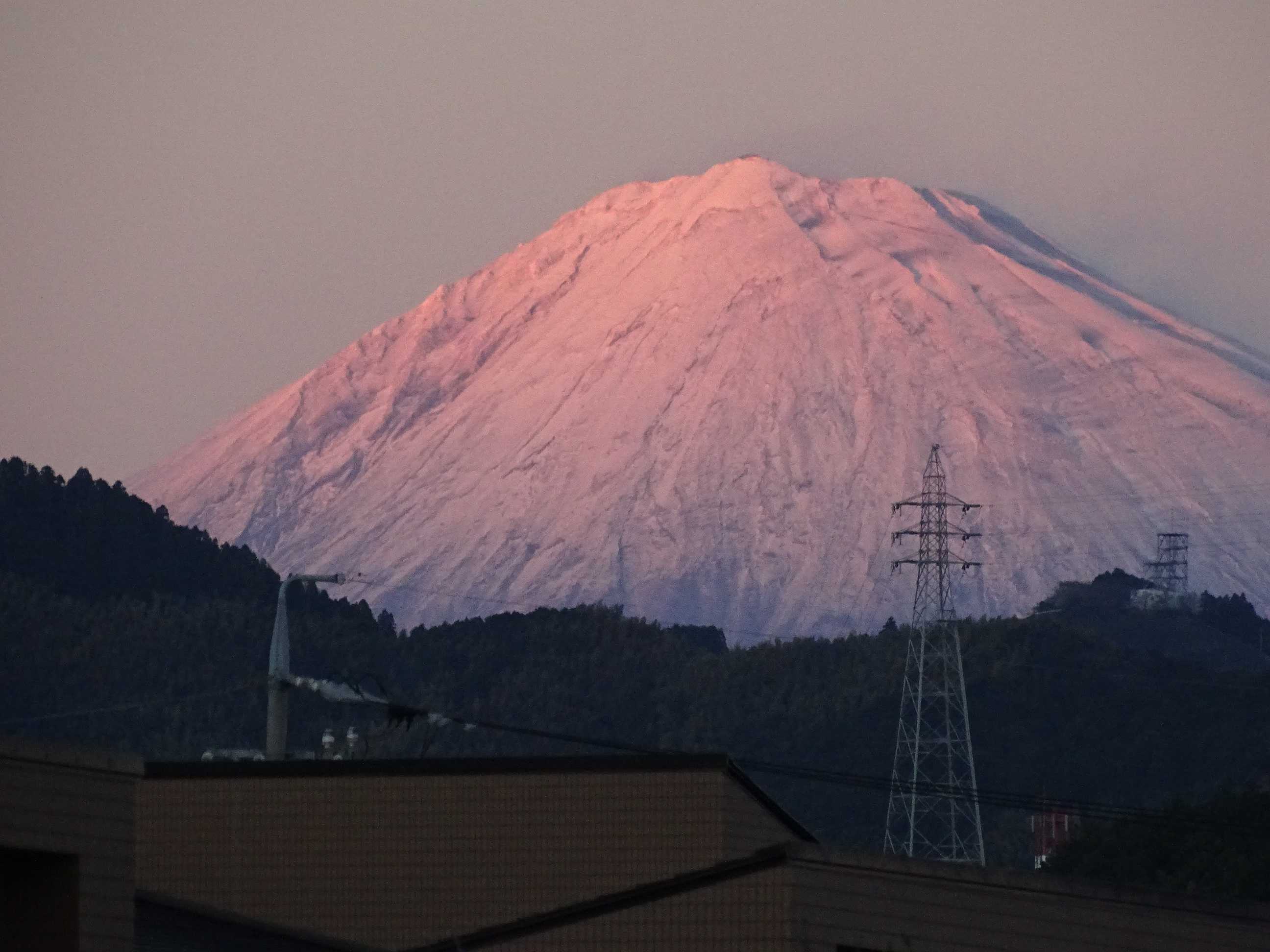 我が家へ帰るころには、雪がピンク色に代わって美しい夕富士が見られました!