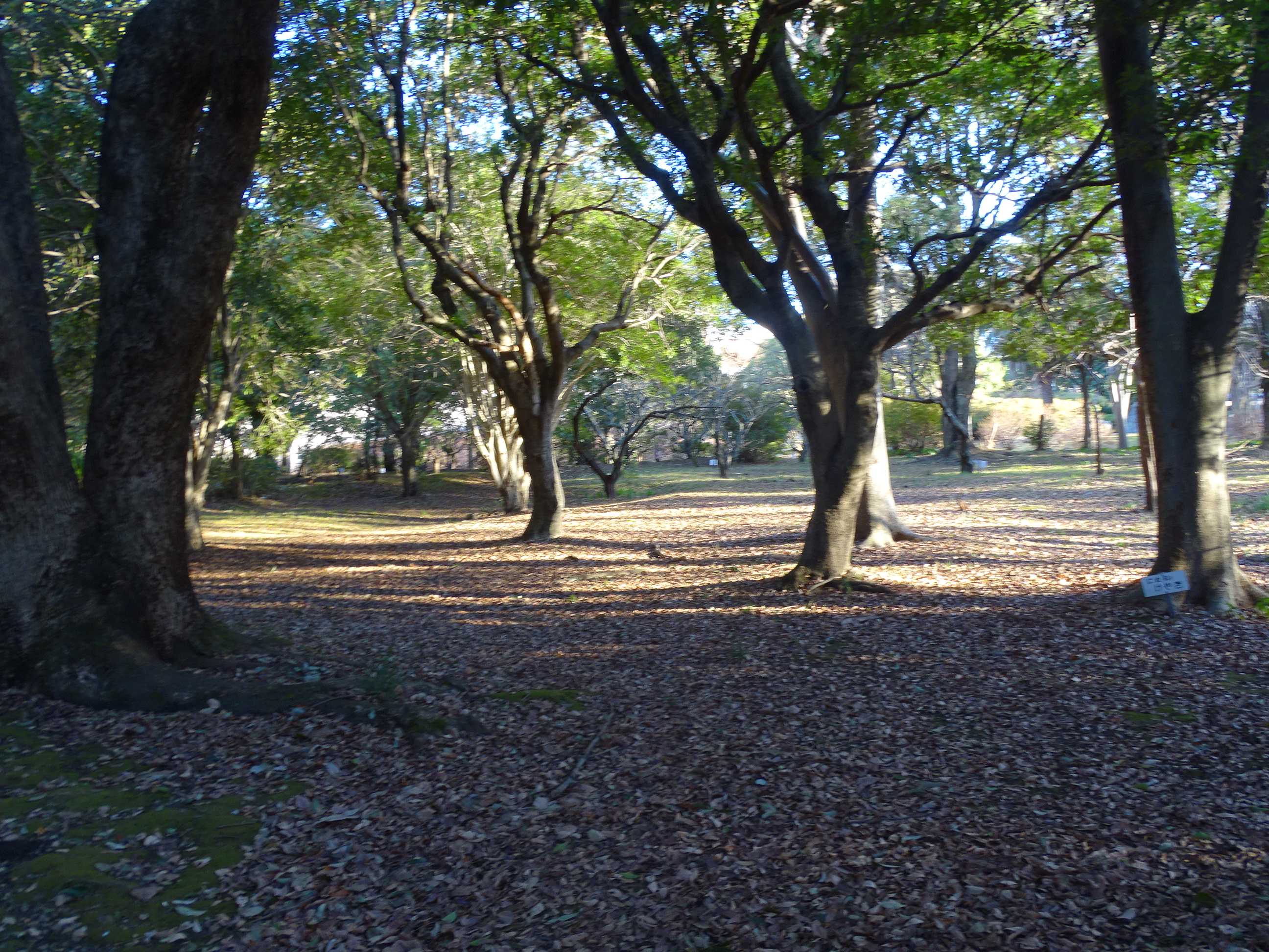 美術館前の庭には枯葉が山のように積もっています~ウィンク