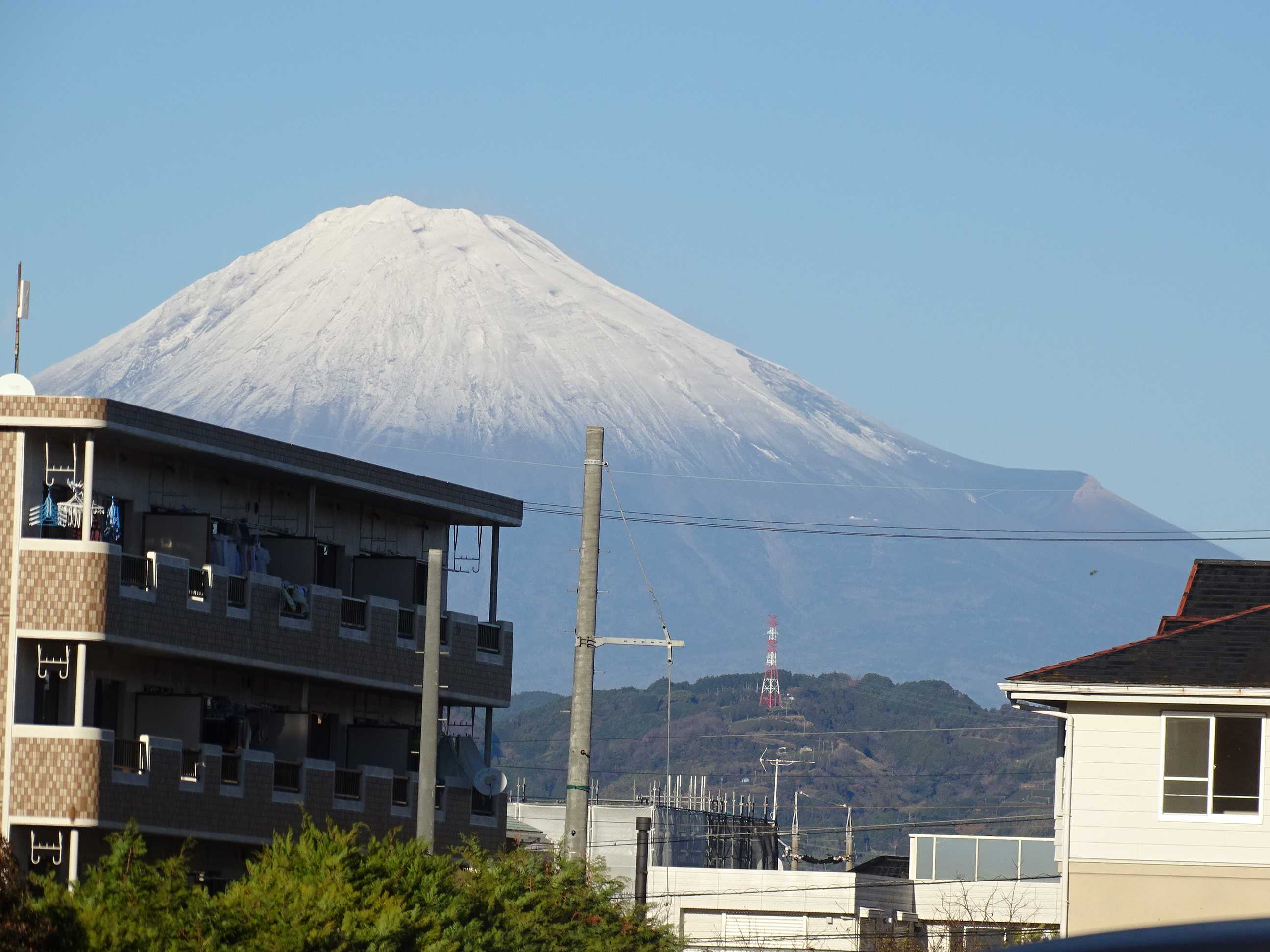 県立美術館駐車場から見える富士山も昨夜来の雨で昨日よりさらに下の五合目あたりまで積もっていました。いよいよ。本格的な冬の到来といったところでしょうか。スマイル