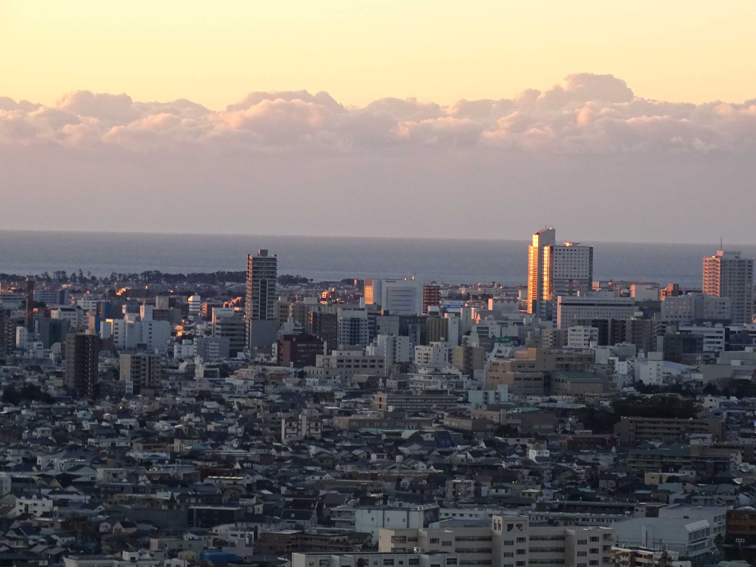 静岡市街の高層ビルや高層マンションを照らし始める~