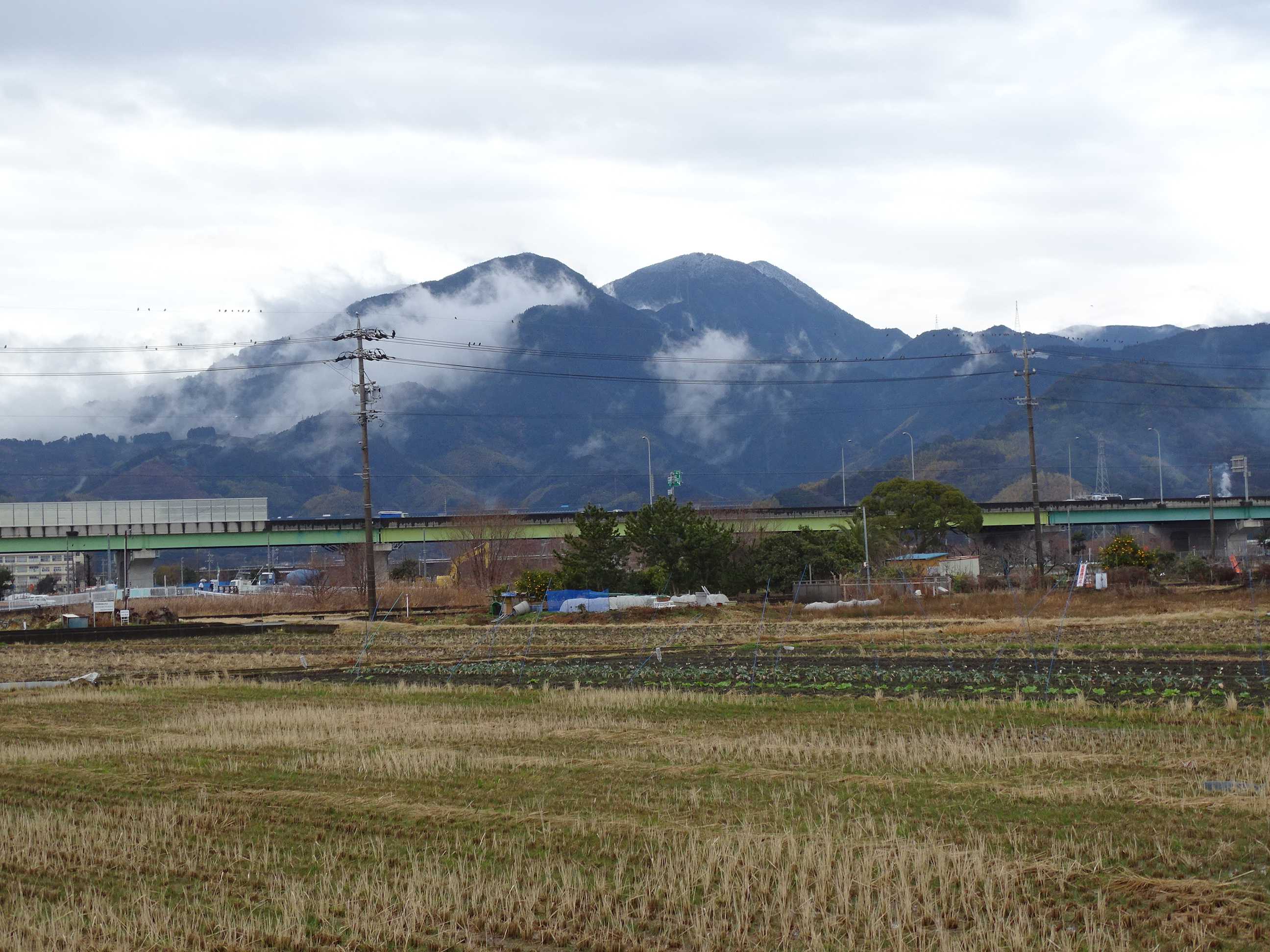 雨の止み間に見えた竜爪山、たしかに雪がうっすら積もってる~今年になって2度目である。