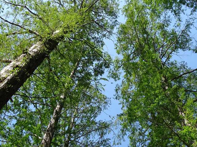 公園のシンボル的な大樹の並木、メタセコイアの新緑が美しい~