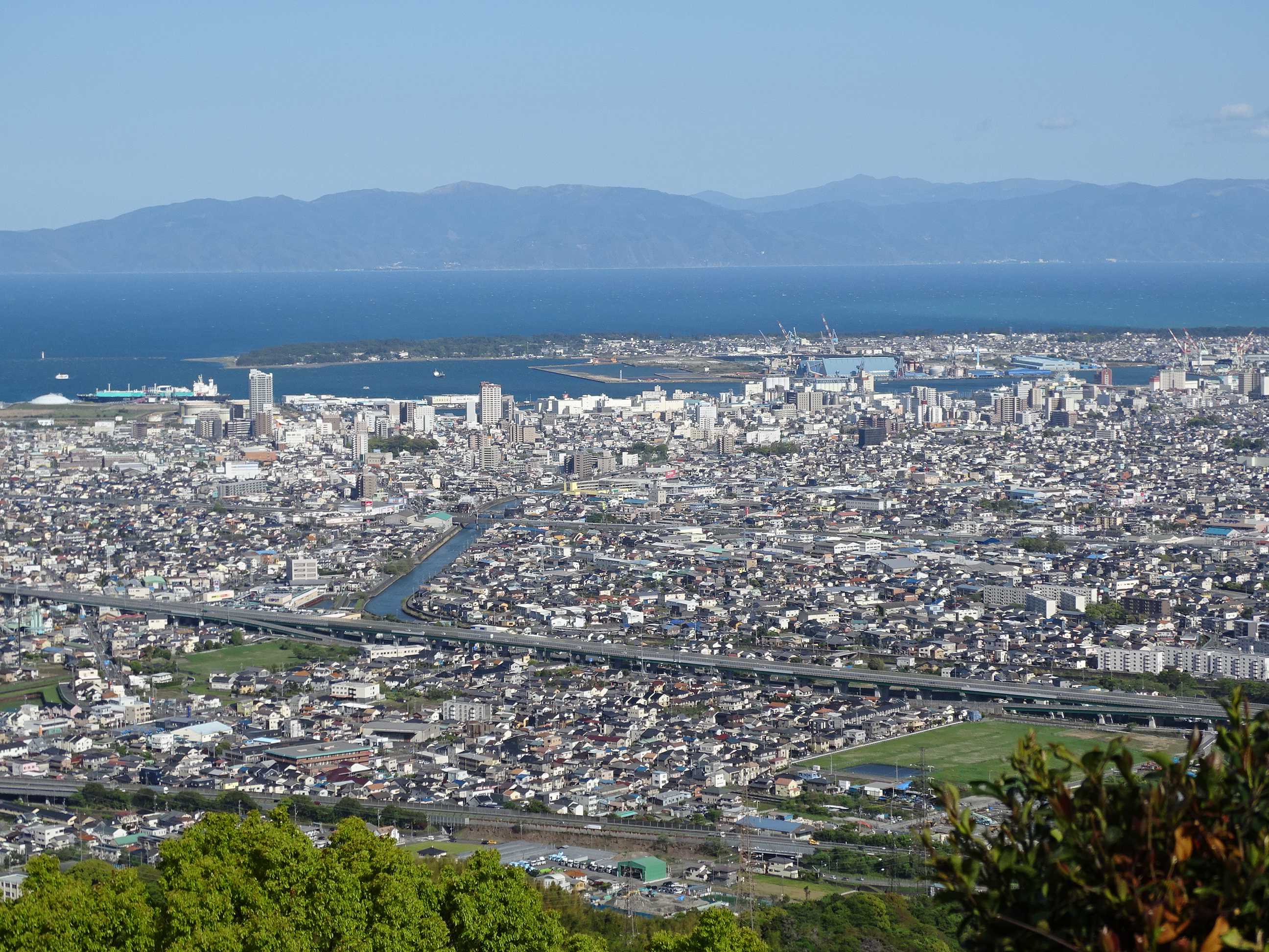 梶原山(279m)山頂からは、眼下に東名高速道路や駿河区の街並みと駿河湾が拡がります~