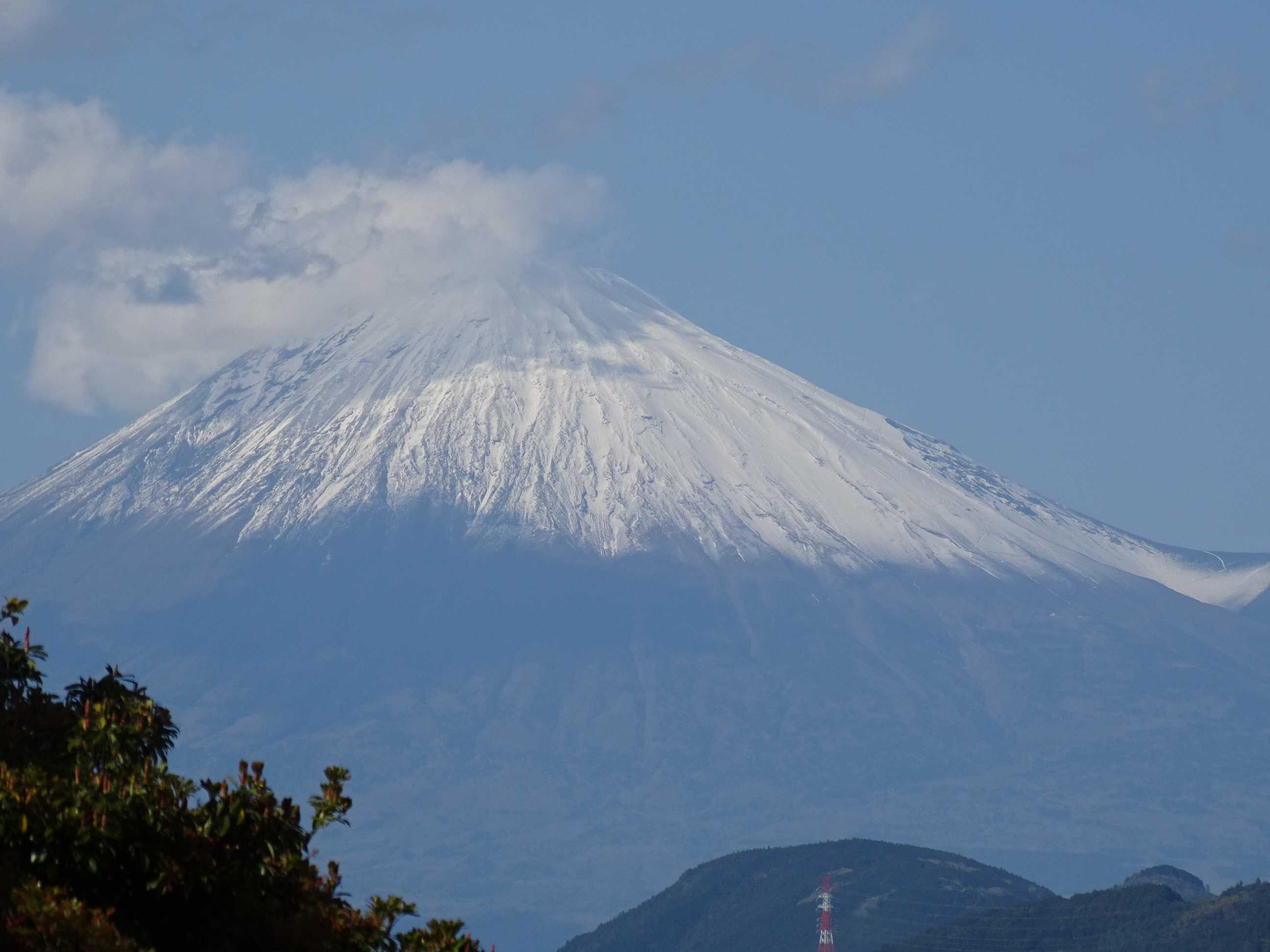 強風で白波が立っている駿河湾の先には、沼津アルプスがうっすらと見えてます。