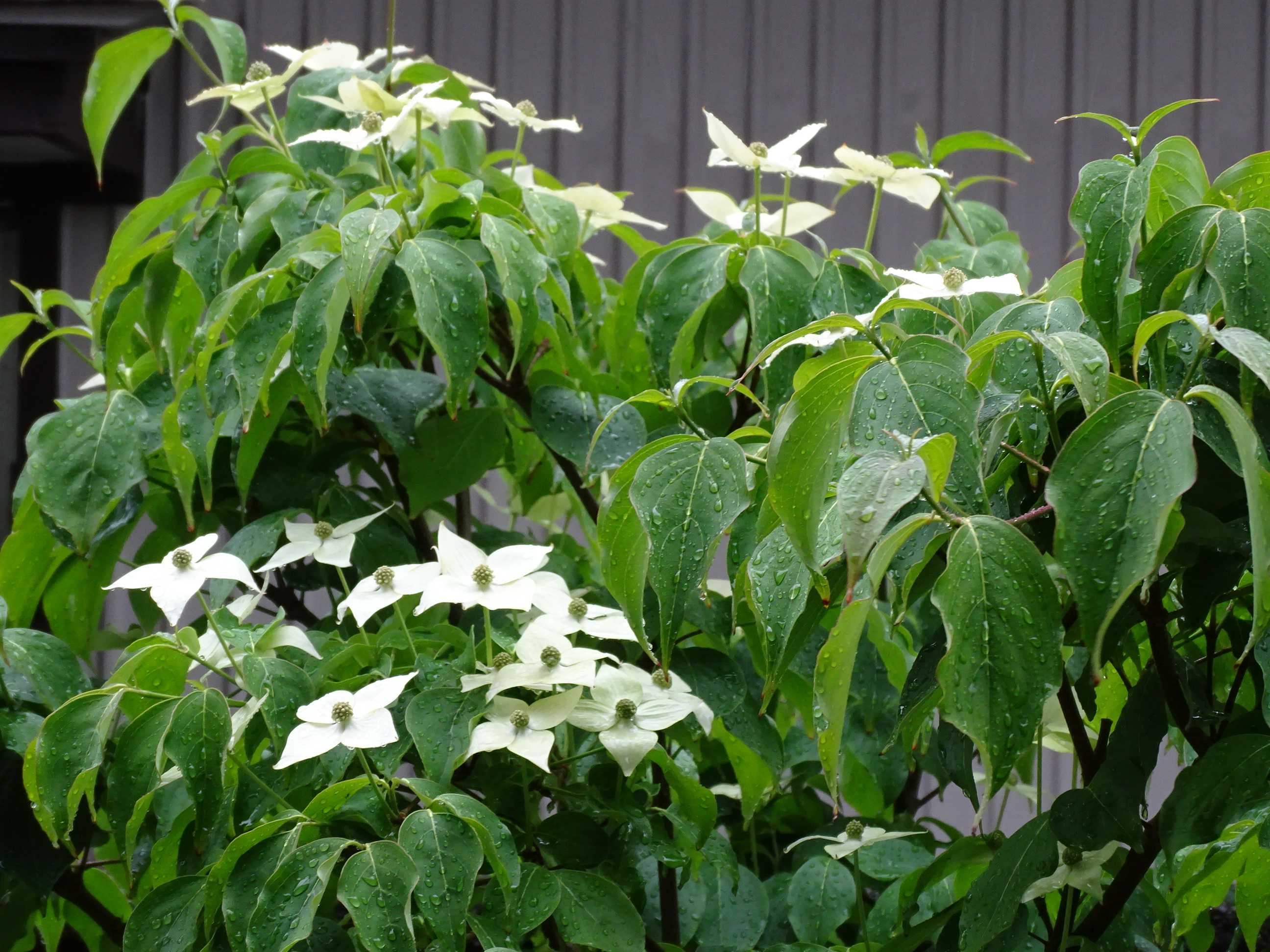 ホームセンターで買って地植えにしたヤマボウシ(ミズキ科)が5年目でようやく花を咲かせている!