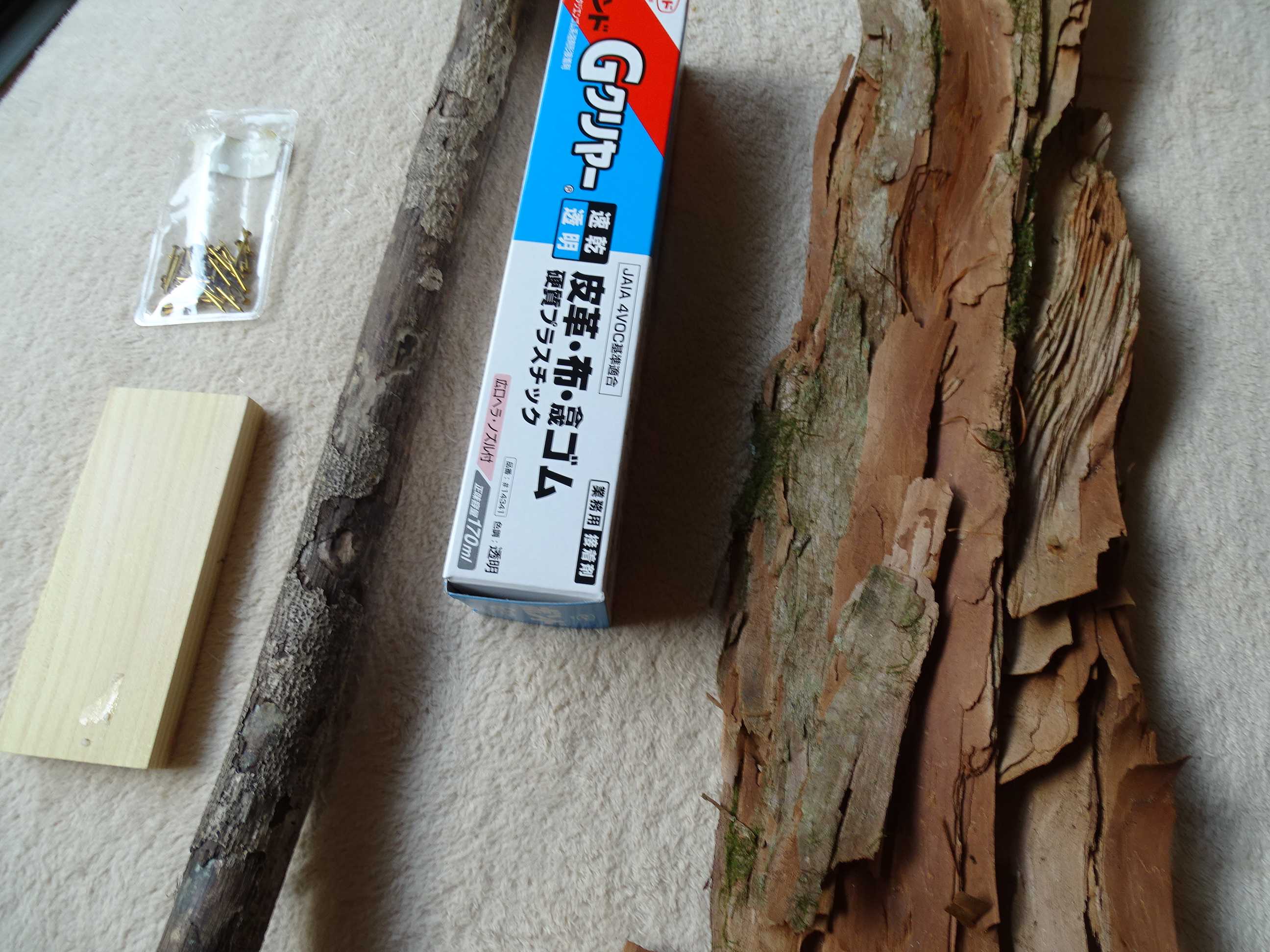 屋根に葺くヒノキの樹皮少々、接着剤、小さな釘数本、