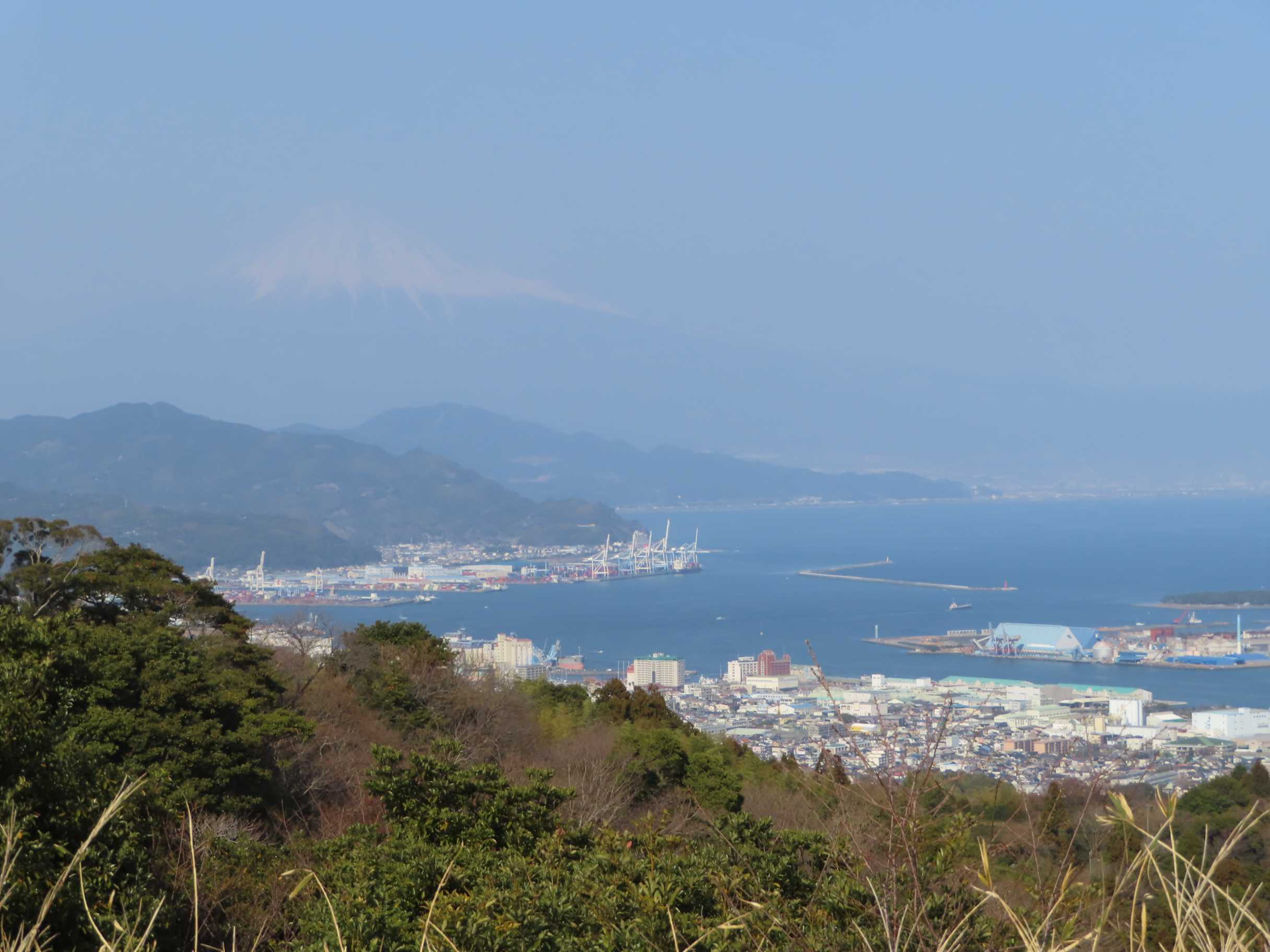 清水港の先に富士山がくっきりとと云いたいところですが、