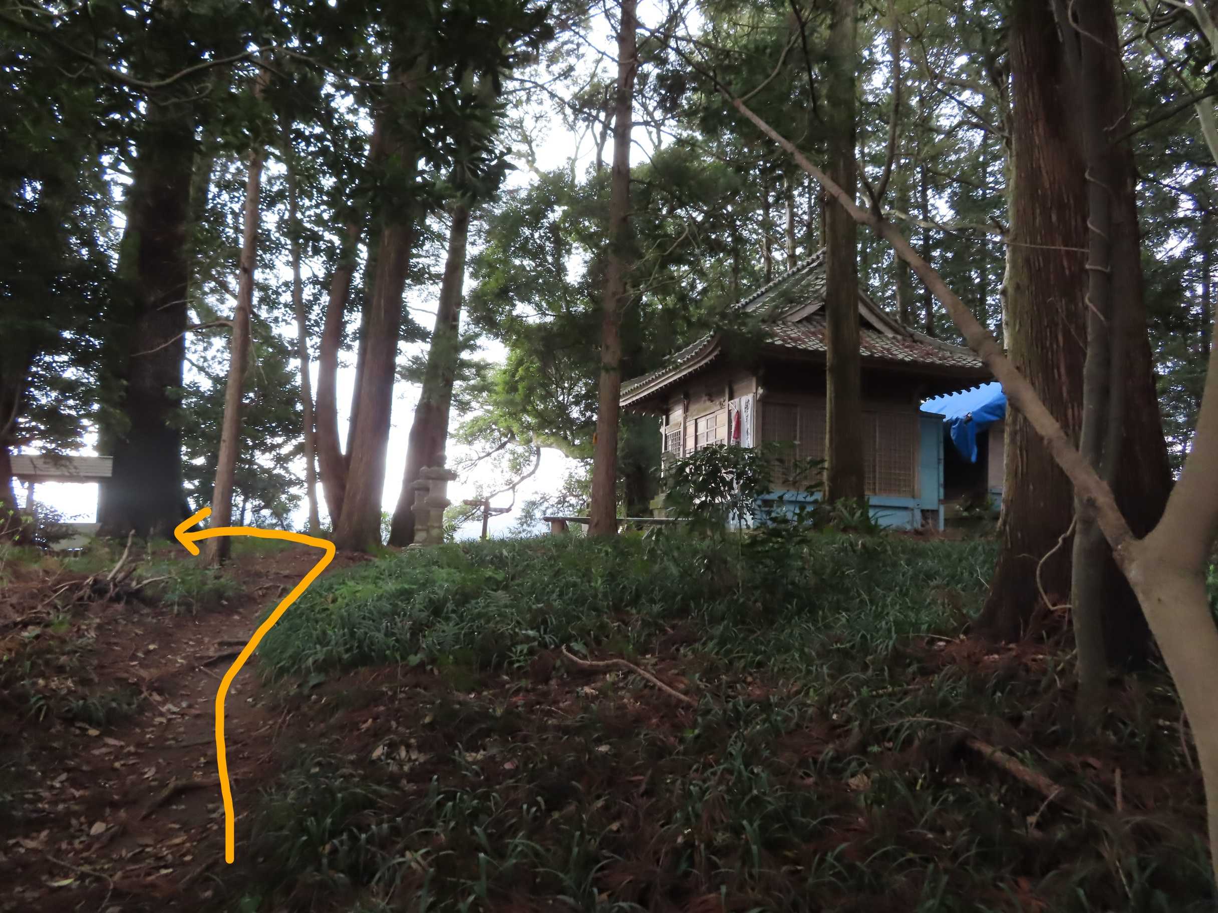 通称、福成さんこと福成神社(227m)ふくなりじんじゃに到着!この真裏に四等三角点の標石はある。