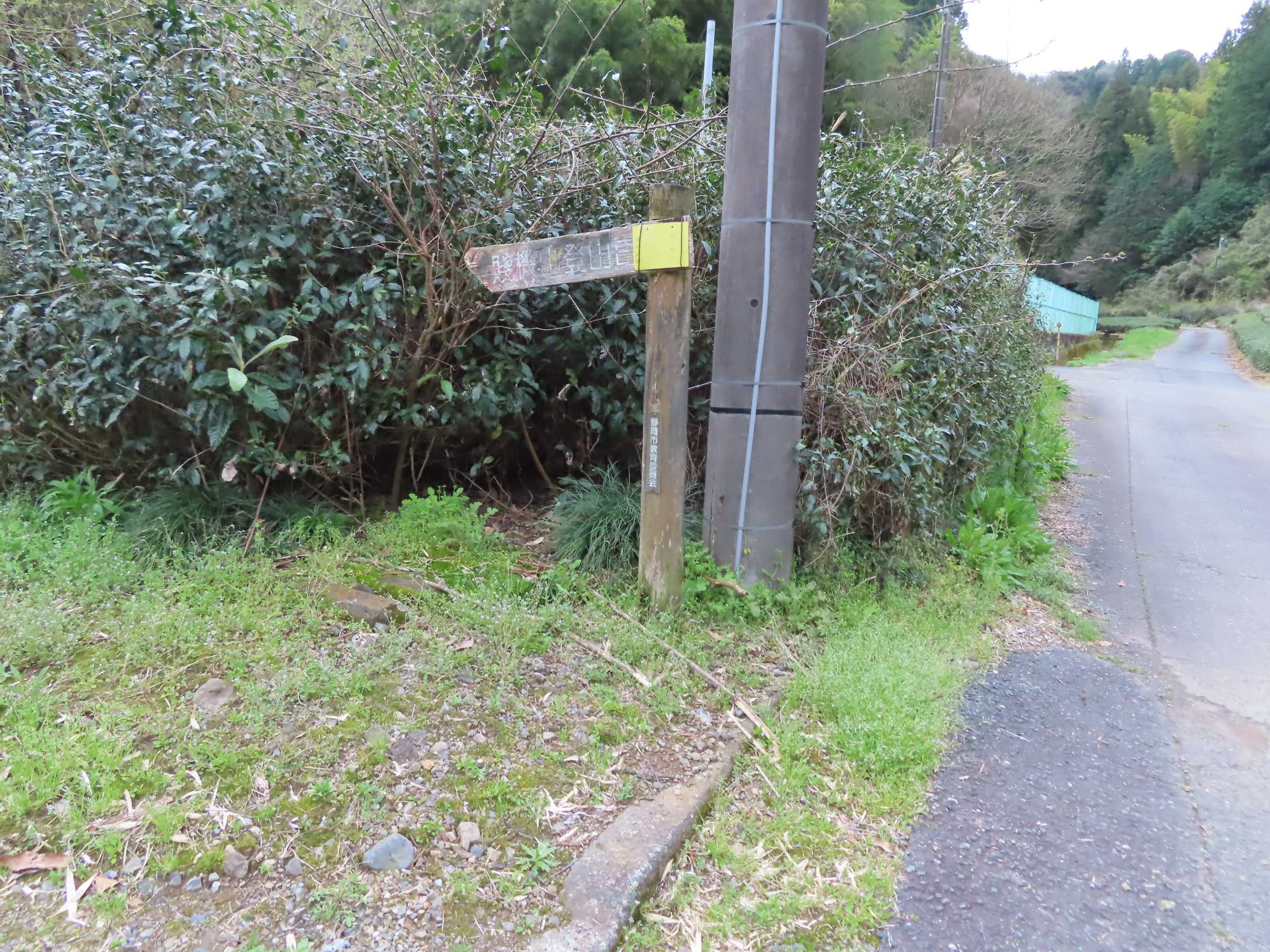 登り始めて、まもなく、左に羽高団地、ファミマ方面への山道を見送り直進すればこの標識に出る。