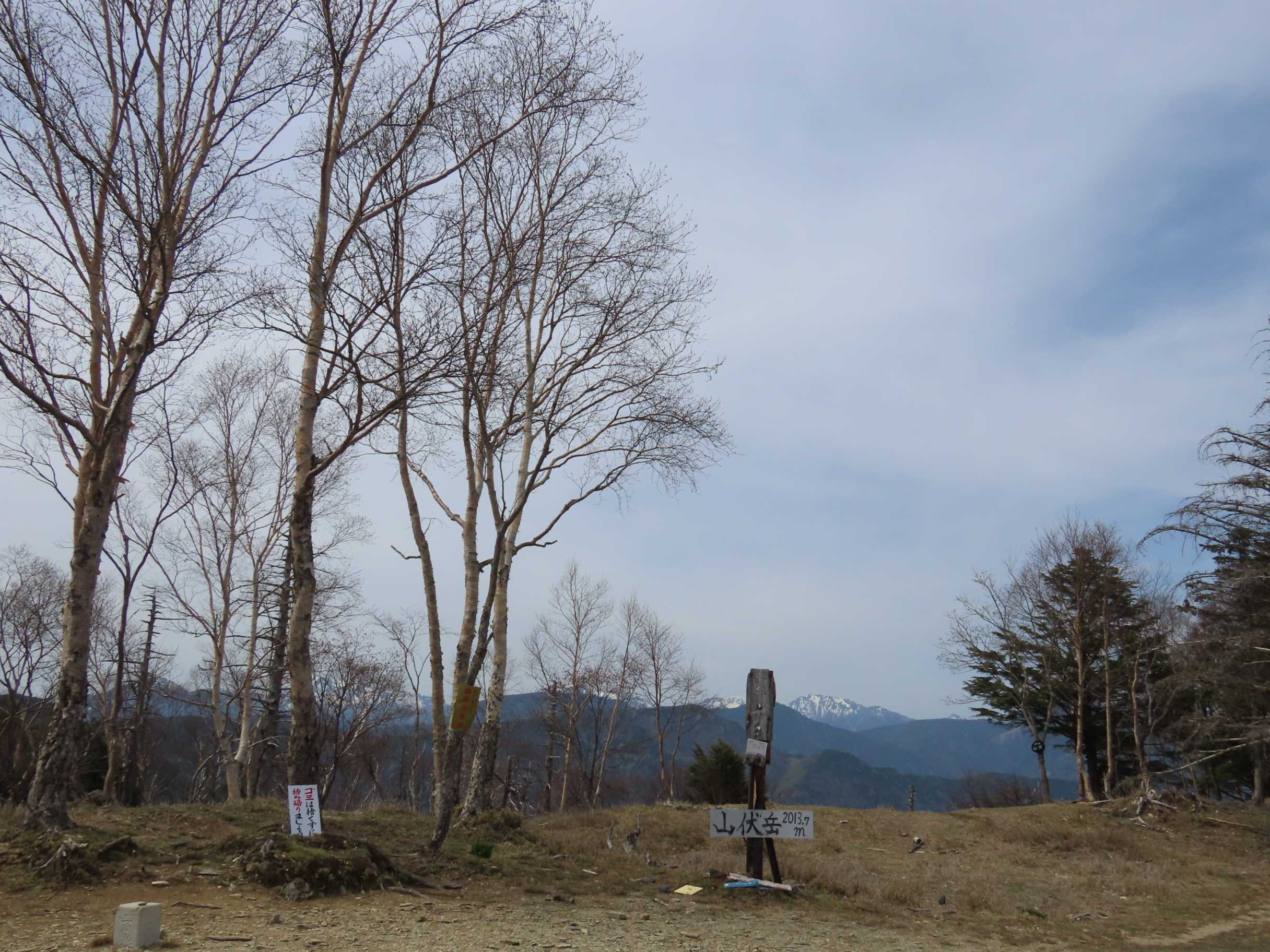 二等三角点標石のある山頂からの展望は申し分ない!北側に南アルプス南部の山々を一望(光岳から鳳凰三山まで)東面からは富士山がドーンと居座る!(なお、三角点の点名は、山伏峠となっている)
