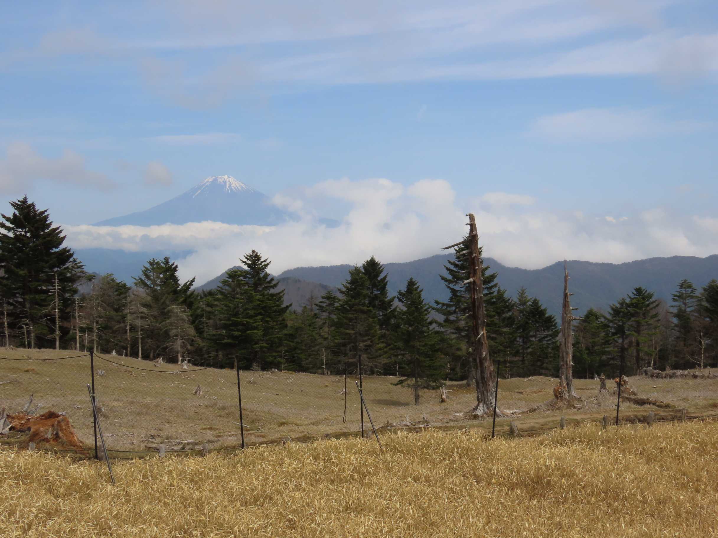 ヤナギランやクガイソウ、クルマユリなどがニホンジカの食害によって激減したために作られた防鹿柵が興趣を欠いているが、この木道付近から見る富士山がボクは好きだ!