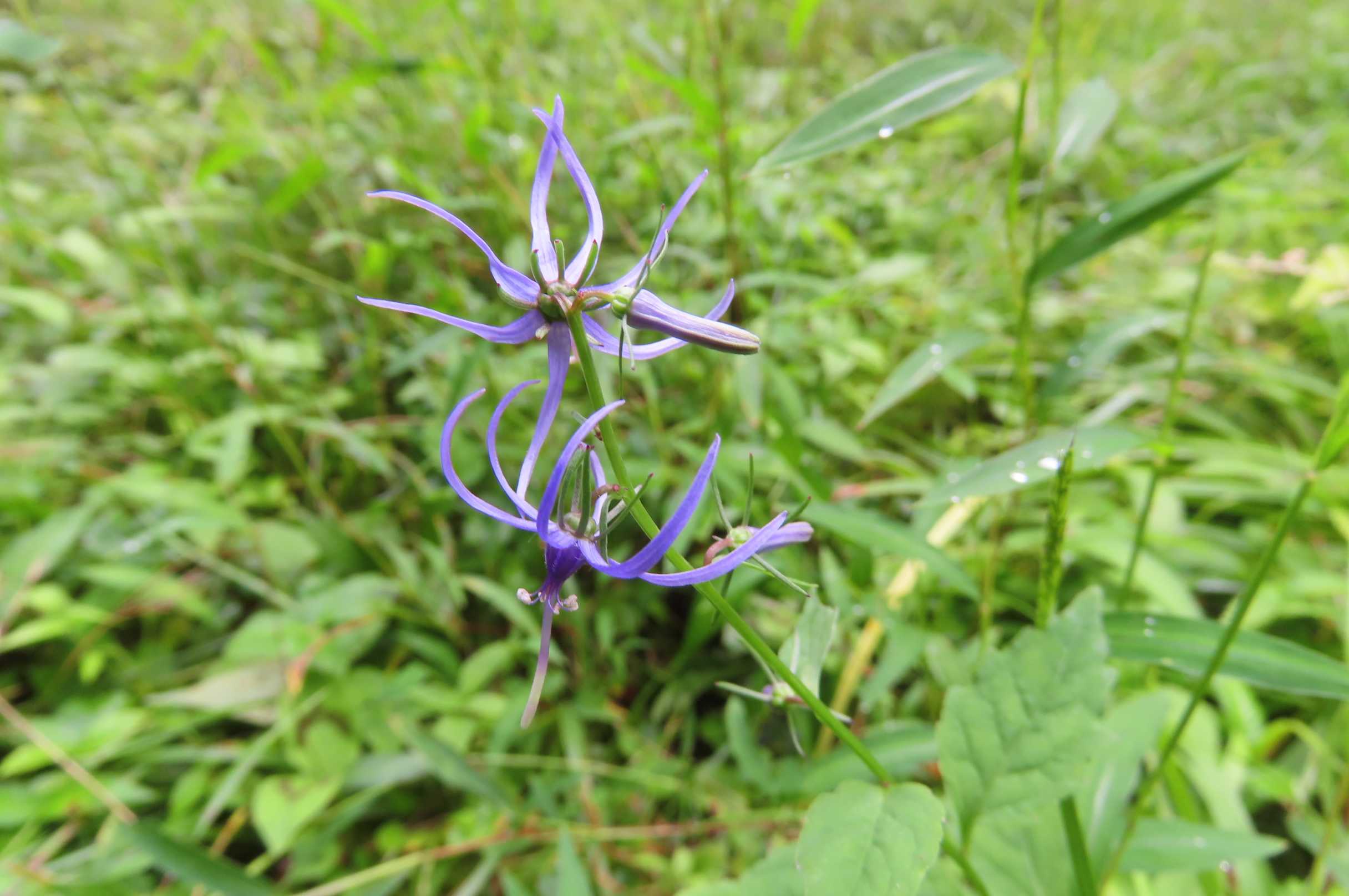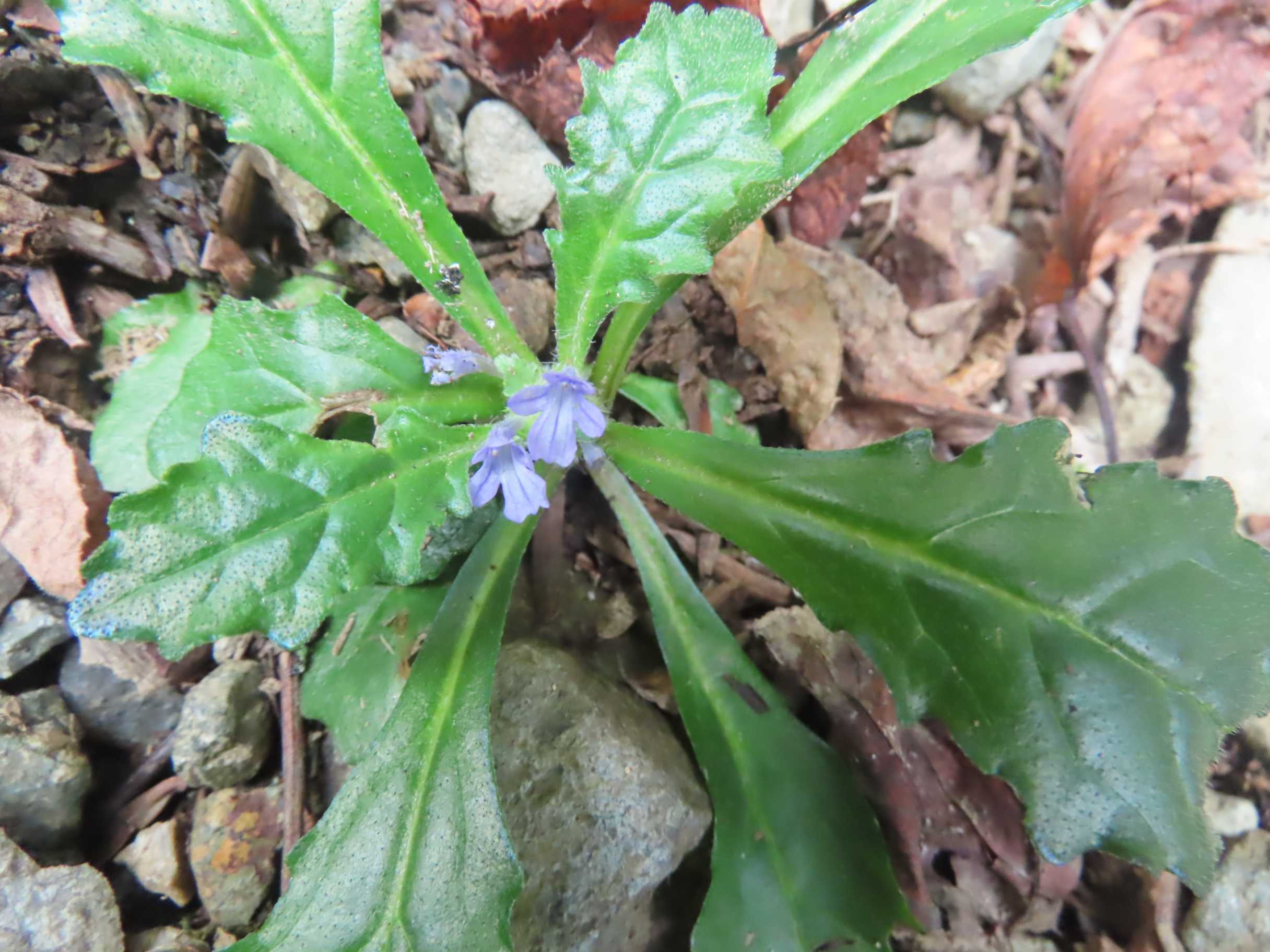 登山道のど真ん中にたった一株咲いていた青い小さな花!茎の頭に2~3ケの花がついている。見逃す訳にはいかずにしゃがんで撮ってみたが、、
