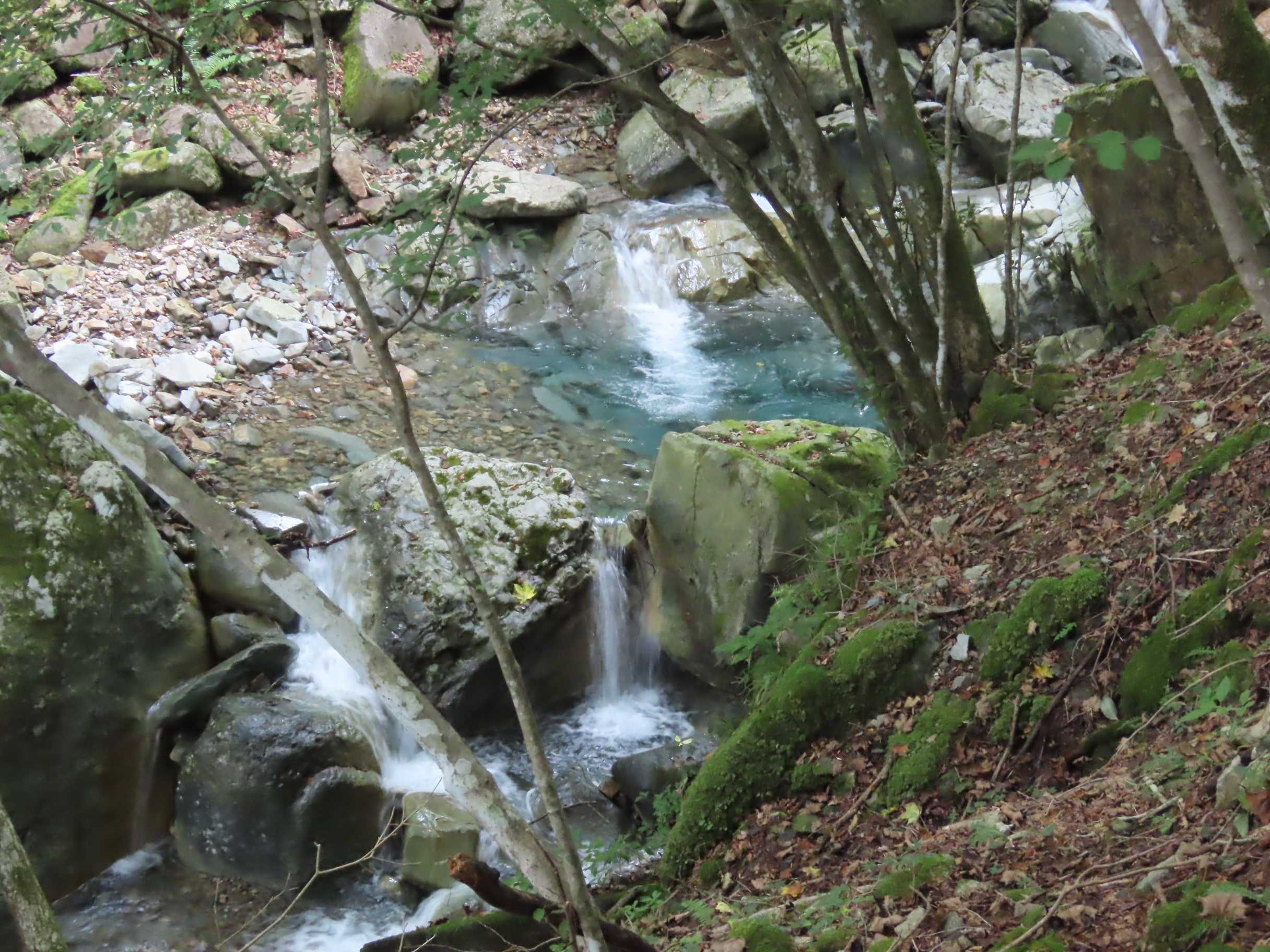 右岸から左岸に渡り、じきに現れる比丘尼の滝(びくにのたき)