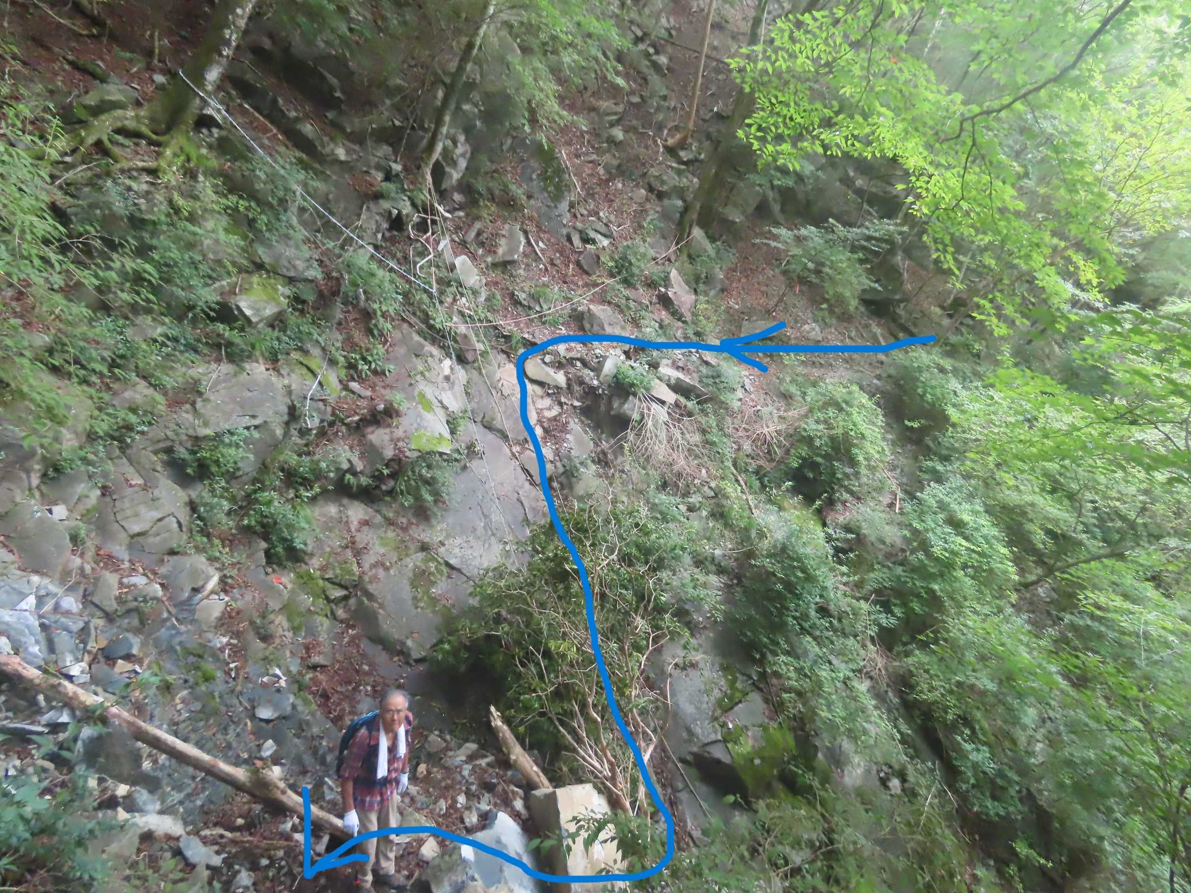 今日の沢コースで唯一の気の抜けない岩場を通過~びっくり