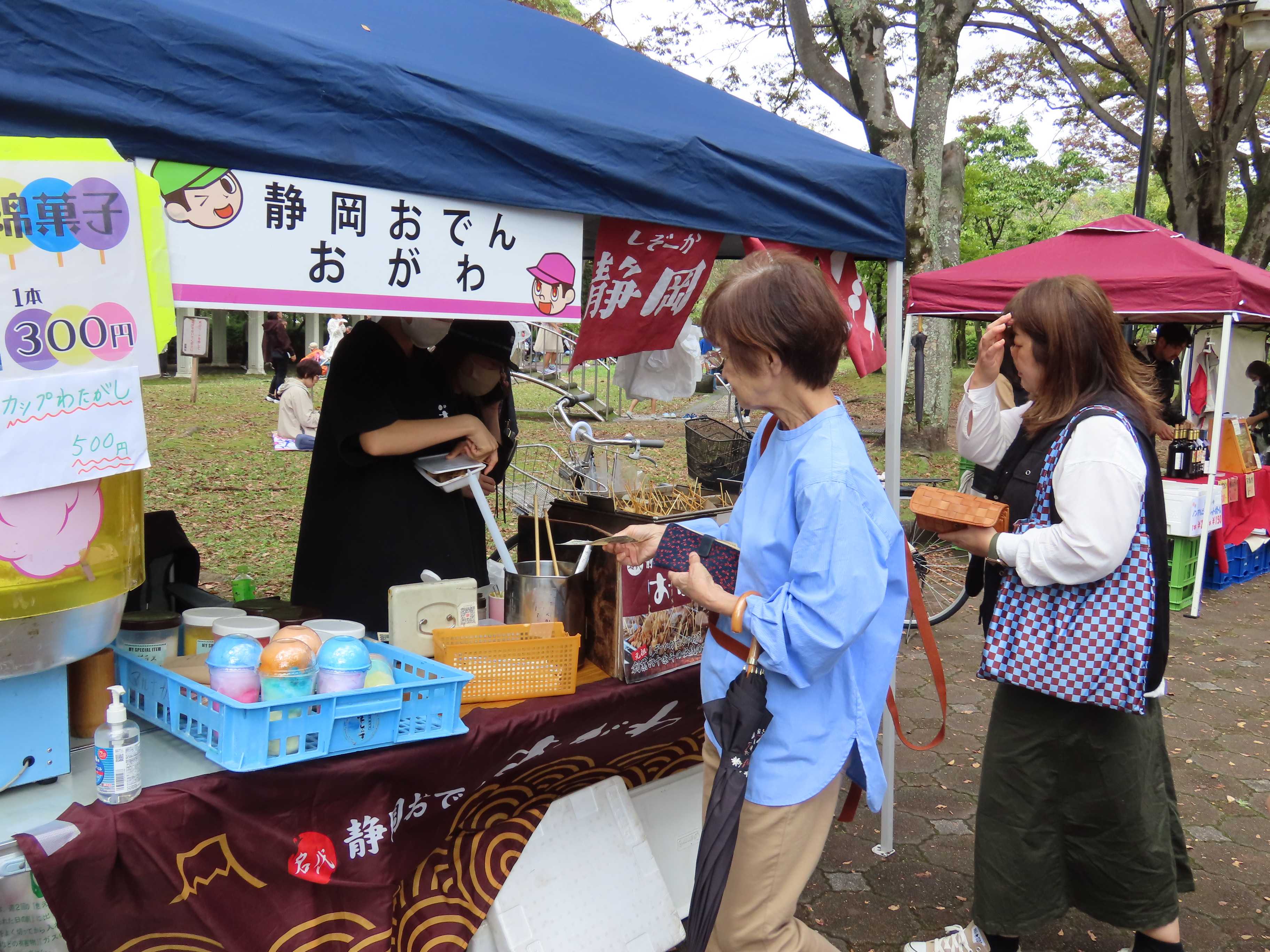 家から歩いて15分程度だったが、着く頃には太陽が顔を出して澄んだ青空が拡がった。花時計広場には、30店以上、雑貨、カフェ、静岡おでん、和菓子、洋菓子、古書店などが並んで賑わっていた~行ってみればなかなか楽しいものでついつい見とれて、腹の虫も泣き出したので昼食用に、晩酌の肴にとあれもこれもと買い込んでしまった!