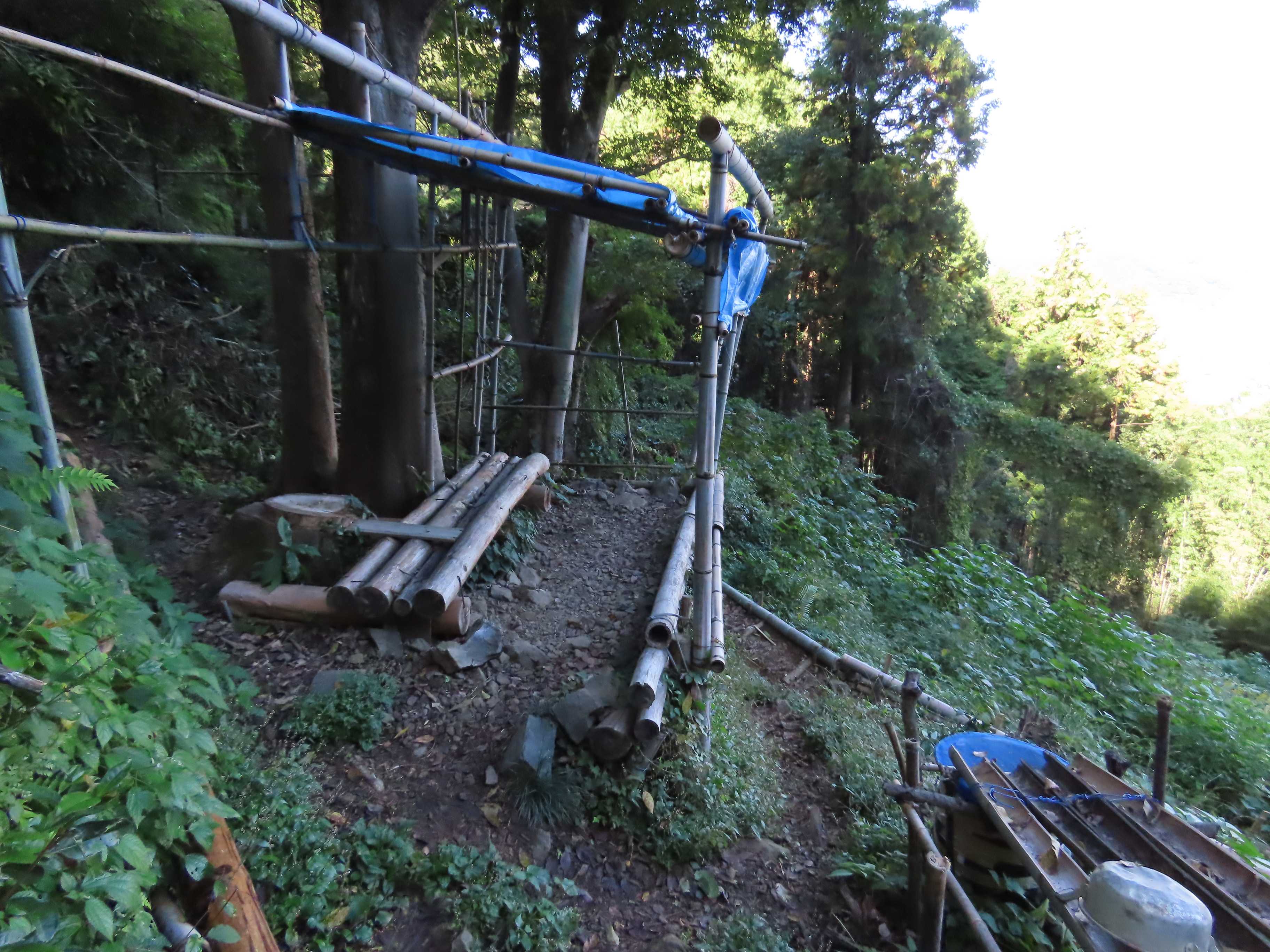 下り始めは、段差のある階段下りが続いたが、じきにやや緩やかな山道に変わり