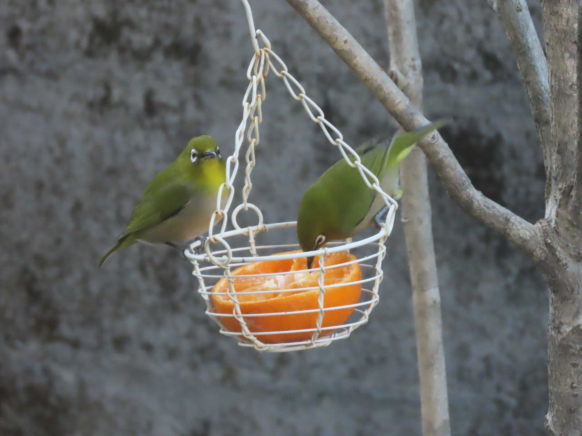 帰宅したらメジロが仲良く食事中だった~
