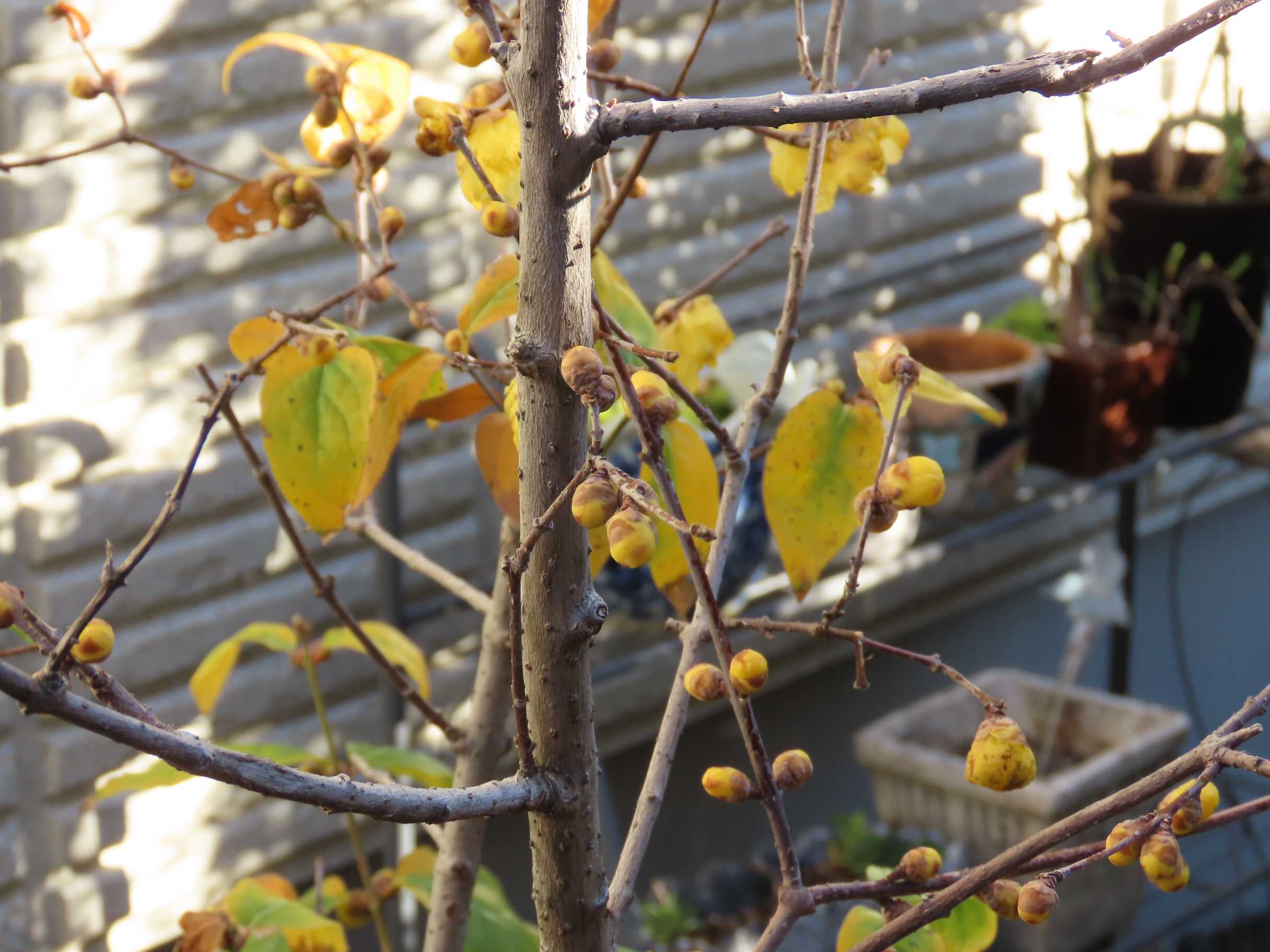 我が家のソシンロウバイ(ロウバイ科)も蕾がふくらんできた~