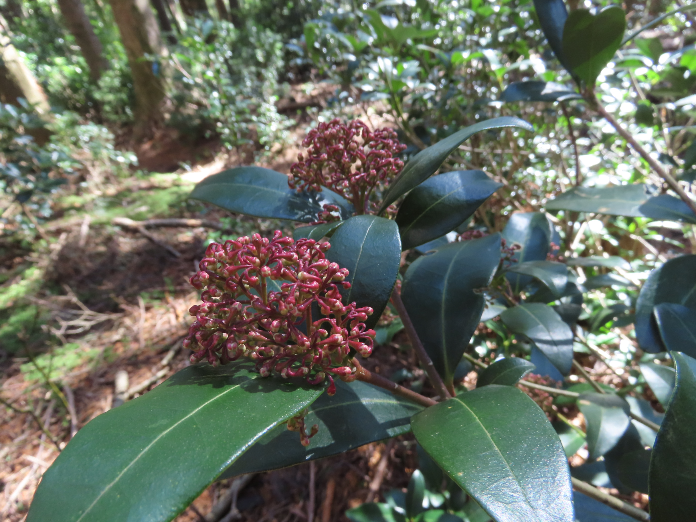 登山道のまわりには、ミヤマシキミ(ミカン科)が多く、日当たりの良い場所では、早くも蕾が膨らんでいる~