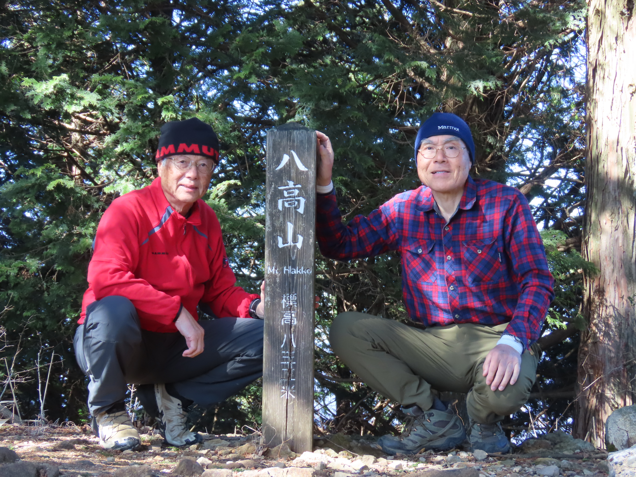 さらに10分で一等三角点のある八高山(832m)山頂着~k口さん(右)と記念写真を~